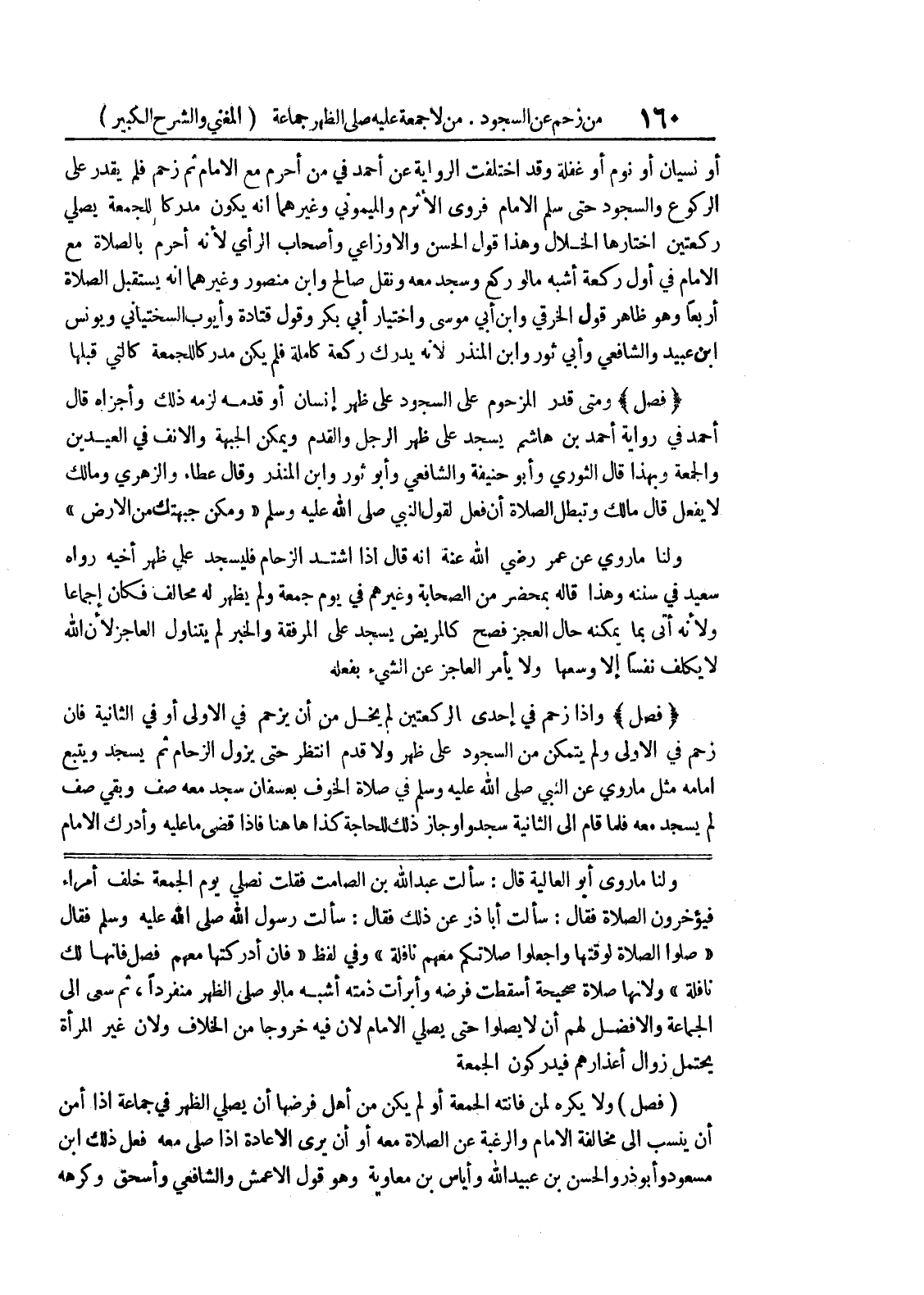 ولنا ما روى أبو العالية قال: سألت عبد الله بن الصامت فقلت نصلي يوم الجمعة خلف أمراء فيؤخرون الصلاة فقال: سألت أبا ذر عن ذلك فقال: سألت رسول الله صلى الله عليه وسلم فقال " صلوا الصلاة لوقتها واجعلوا صلاتكم معهم نافلة " وفي لفظ " فإن أدركتها معهم فصل فإنها لك نافلة " ولأنها صلاة صحيحة أسقطت فرضه وأبرأت ذمته أشبه ما لو صلى الظهر منفرداً، ثم سعى الى الجماعة والأفضل لهم أن لا يصلوا حتى يصلي الامام لأن فيه خروجاً من الخلاف ولأن غير المرأة يحتمل زوال أعذارهم فيدركون الجمعة (فصل) ولا يكره لمن فاتته الجمعة أو لم يكن من أهل فرضها أن يصلي الظهر في جماعة إذا أمن أن ينسب الى مخالفة الامام والرغبة عن الصلاة معه أو أن يرى الاعادة اذا صلى معه فعل ذلك ابن مسعود وأبو ذر والحسن بن عبيد الله وأياس بن معاوية وهو قول الأعمش والشافعي وأسحق وكره