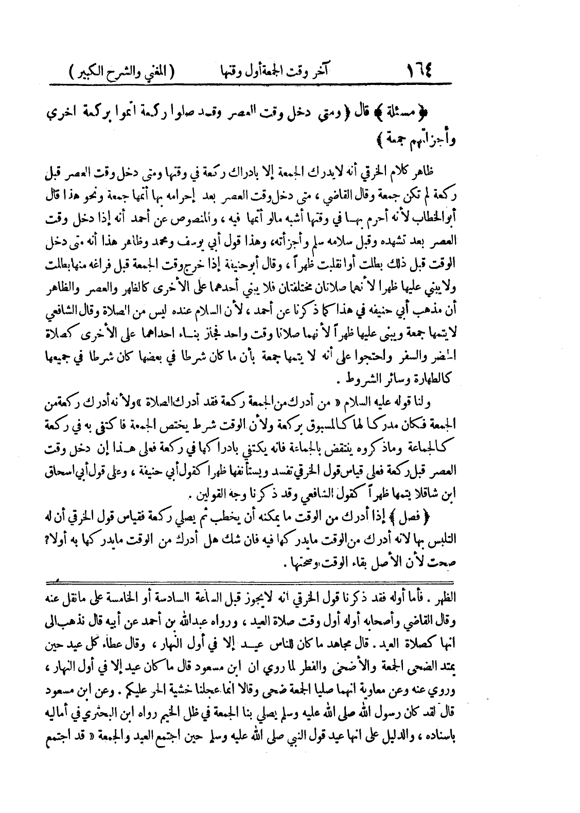 وعن ابن مسعود قال لقد كان رسول الله صلى الله عليه وسلم يصلي بنا الجمعة في ظل الخيم رواه ابن البحتري في أماليه بإسناده، والدليل على أنها عيد قول النبي صلى الله عليه وسلم حين اجتمع العيد والجمعة " قد اجتمع