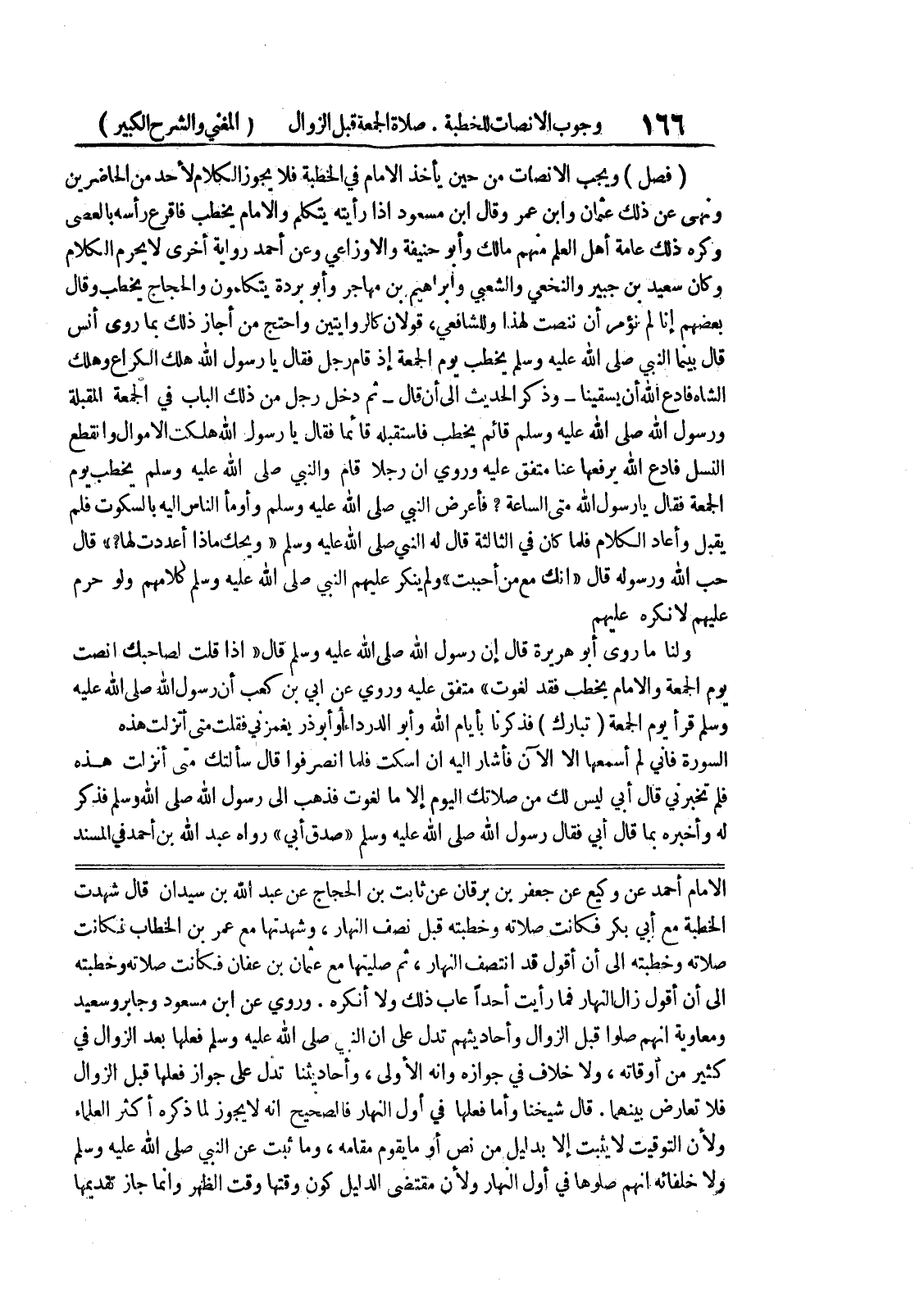 الإمام أحمد عن وكيع عن جعفر بن برقان عن ثابت بن عبد الله بن سيدان قال شهدت الخطبة مع أبي بكر فكانت صلاته وخطبته قبل نصف النهار، وشهدتها مع عمر بن الخطاب فكانت صلاته وخطبته الى أن أقول قد انتصف النهار، ثم صليتها مع عثمان بن عفان فكانت صلاته وخطبته الى أن أقول زال النهار فما رأيت أحداً عاب ذلك ولا أنكره.