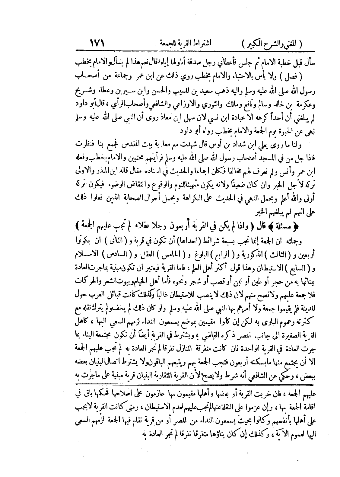 عليهم الجمعة، فان خرجت القرية أو بعضها وأهلها مقيمون بها عازمون على إصلاحها فحكمها باق في اقامة الجمعة بها، وإن عزموا على النقلة عنها لم تجب عليهم لعدم الاستيطان، ومتى كانت القرية لا يجب على أهلها بأنفسهم وكانوا بحيث يسمعون النداء من المصر أو من قرية تقام فيها الجمعة لزمهم السعي اليها لعموم الآية، وكذلك إن كان بناؤها متفرقاً تفرقاً لم تجر العادة به