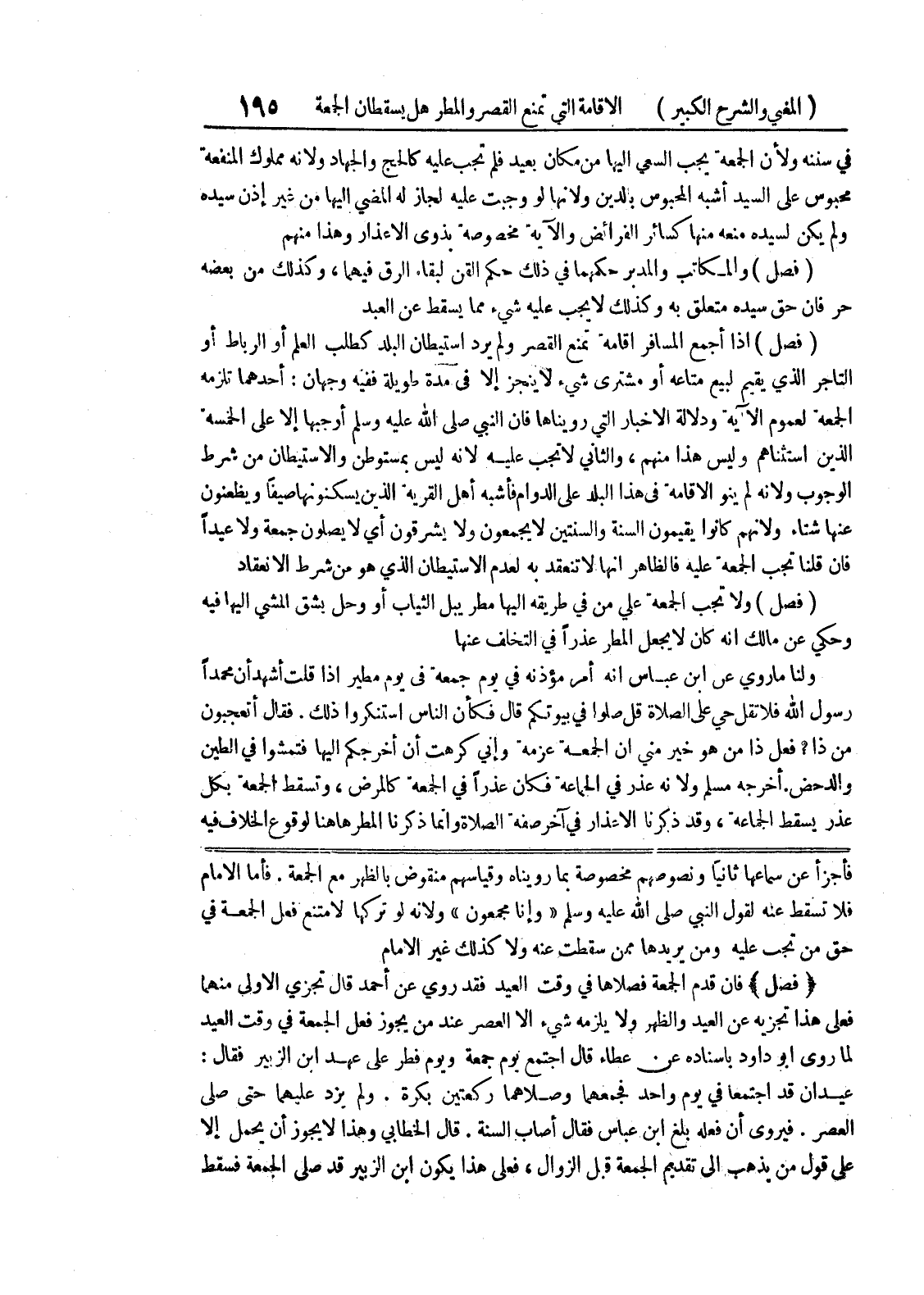 فأما الامام فلا تسقط عنه لقول النبي صلى الله عليه وسلم " وإنا مجمعون " ولأنه لو تركها لامتنع فعل الجمعة في حق من تجب عليه ومن يريدها ممن سقطت عنه ولا كذلك غير الامام * (فصل) * فان قدم الجمعة فصلاها في وقت العيد فقد روي عن أحمد قال تجزي الاولى منهما فعلى هذا تجزيه عن العيد والظهر ولا يلزمه شئ الا العصر عند من يجوز فعل الجمعة في وقت العيد لما روى أبو داود بإسناده عن عطاء قال اجتمع يوم جمعة ويوم فطر على عهد ابن الزبير فقال: عيدان قد اجتمعا في يوم واحد فجمعهما وصلاهما ركعتين بكرة.