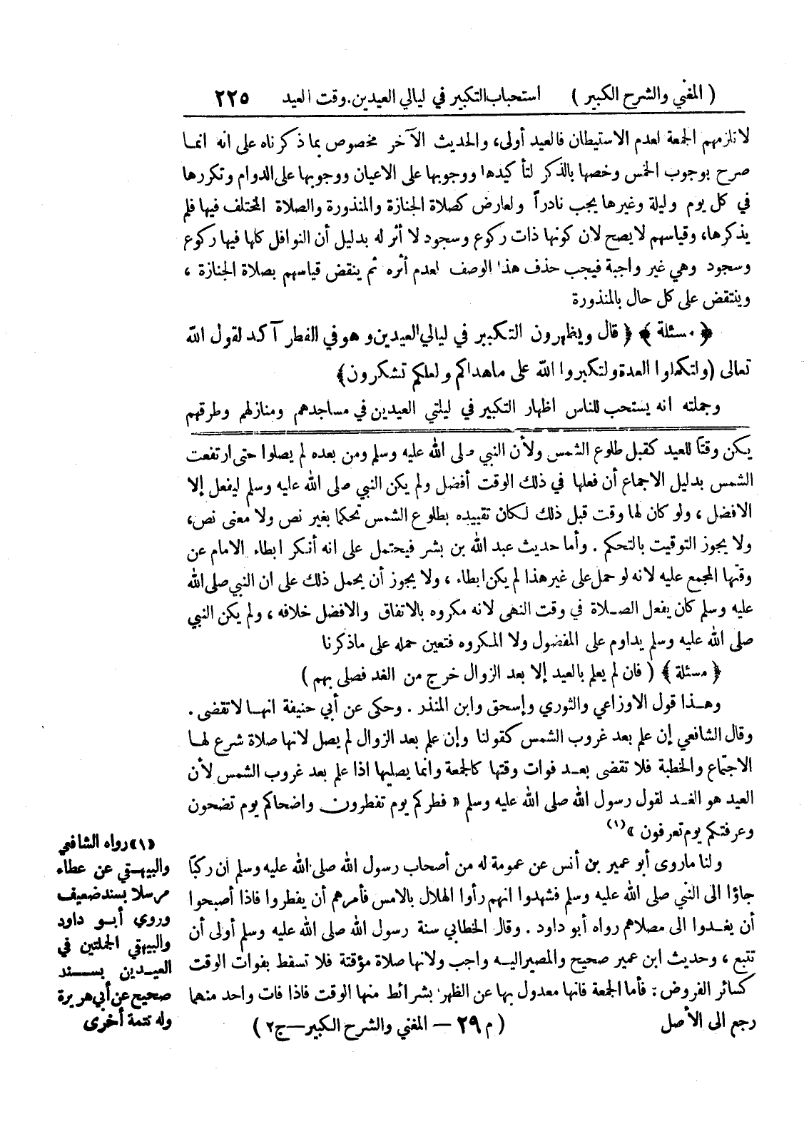 " 1 " رواه الشافعي والبيهقي عن عطاء مرسلا بسند ضعيف وروى أبو داود والبيهقي الجملتين في العيدين بسند صحيح عن أبي هريرة وله تتمة أخرى
