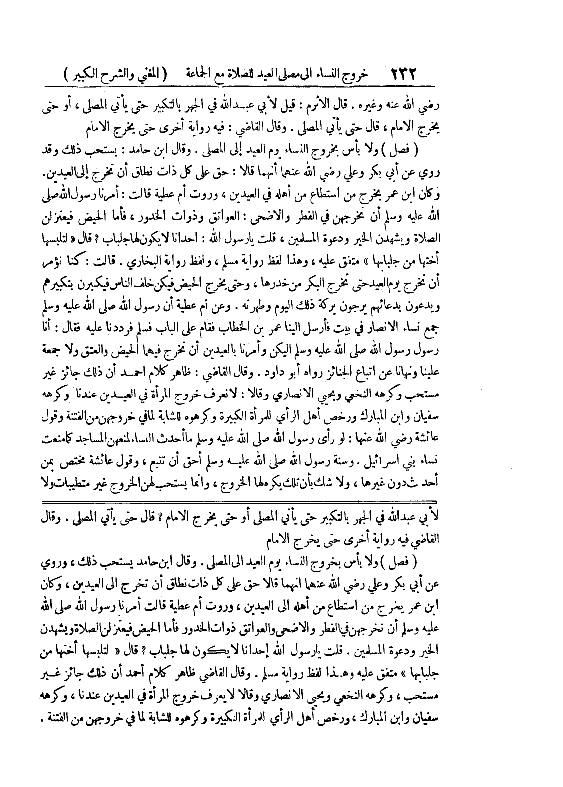 وقال القاضي فيه رواية أخرى حتى يخرج الامام (فصل) ولا بأس بخروج النساء يوم العيد الى المصلى.