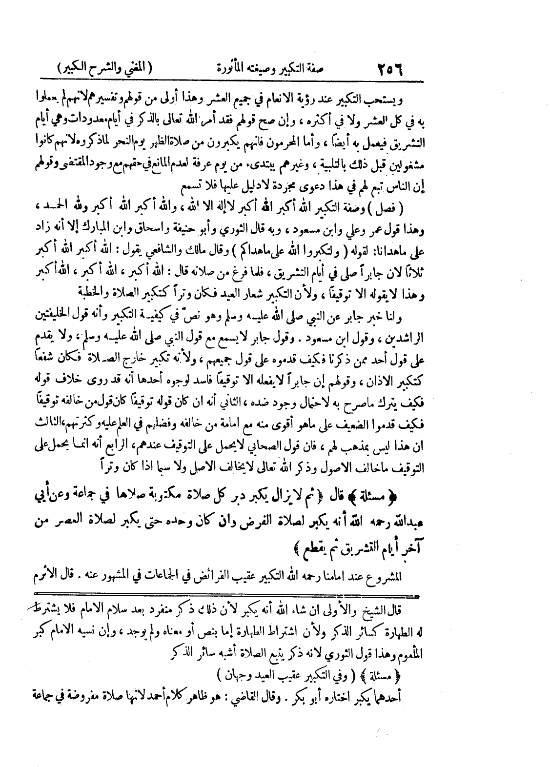 قال الشيخ والأولى إن شاء الله أنه يكبر لأن ذلك ذكر منفرد بعد سلام الامام فلا يشترط له الطهارة كسائر الذكر ولأن اشتراط الطهارة إما بنص أو معناه ولم يوجد، وإن نسيه الامام كبر المأموم وهذا قول الثوري لأنه ذكر يتبع الصلاة أشبه سائر الذكر * (مسألة) * (وفي التكبير عقيب العيد وجهان) أحدهما يكبر اختاره أبو بكر.