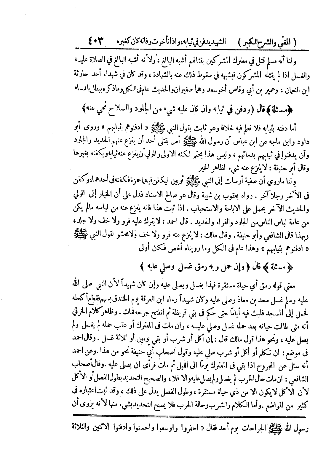 رسول الله صلى الله عليه وسلم الجراحات يوم أحد فقال " احفروا وأوسعوا وأحسنوا وادفنوا الاثنين والثلاثة