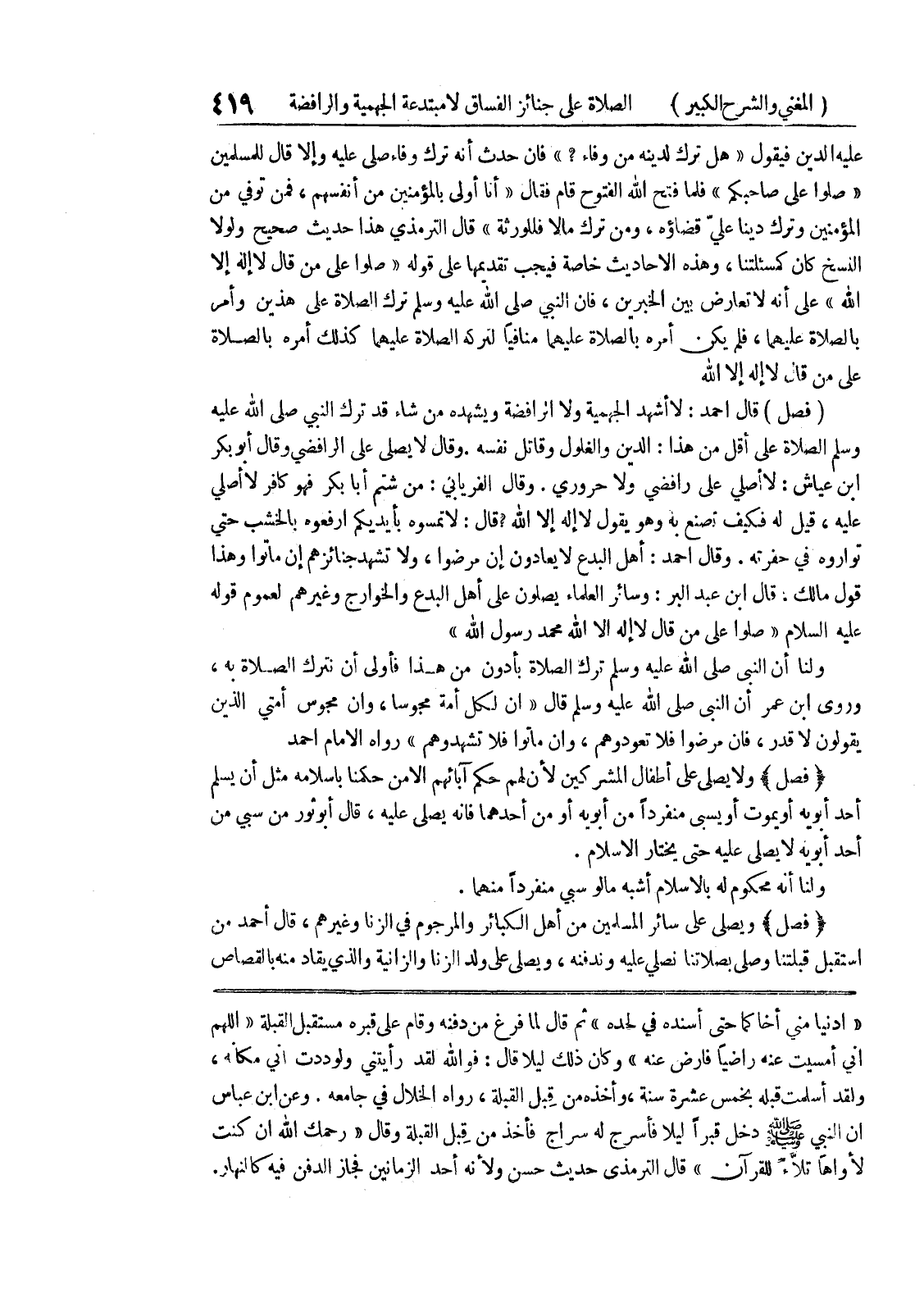 " ادنيا مني أخاكما حتى اسنده في لحده " ثم قال لما فرغ من دفنه وقام على قبره مستقبل القبلة " اللهم إني أمسيت عنه راضياً فارض عنه " وكان ذلك ليلا قال: فوالله لقد رأيتني ولوددت أني مكانه، ولقد أسلمت قبله بخمس عشرة سنة، وأخذه من قبل القبلة، رواه الخلال في جامعه.