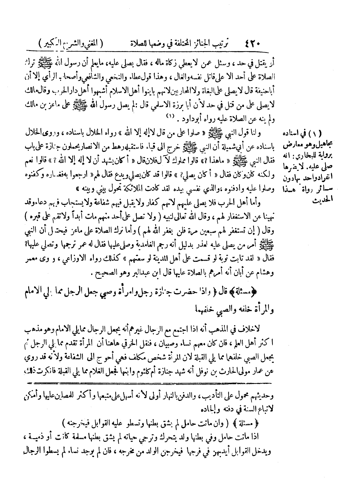 وحديثهم محمول على التأديب، والدفن بالنهار أولى لأنه أسهل على متبعها وأكثر للمصلين عليها وأمكن لاتباع السنة في دفنه وإلجاده * (مسألة) * (وإن ماتت حامل لم يشق بطنها وتسطو عليه القوابل فيخرجنه) اذا ماتت حامل وفي بطنها ولد يتحرك وترجى حياته لم يشق بطنها مسلمة كانت أو ذمية، ويدخل القوابل أيدبهن في فرجها فيخرجن الولد من مخرجه، فإن لم يوجد نساء لم يسطوا الرجال