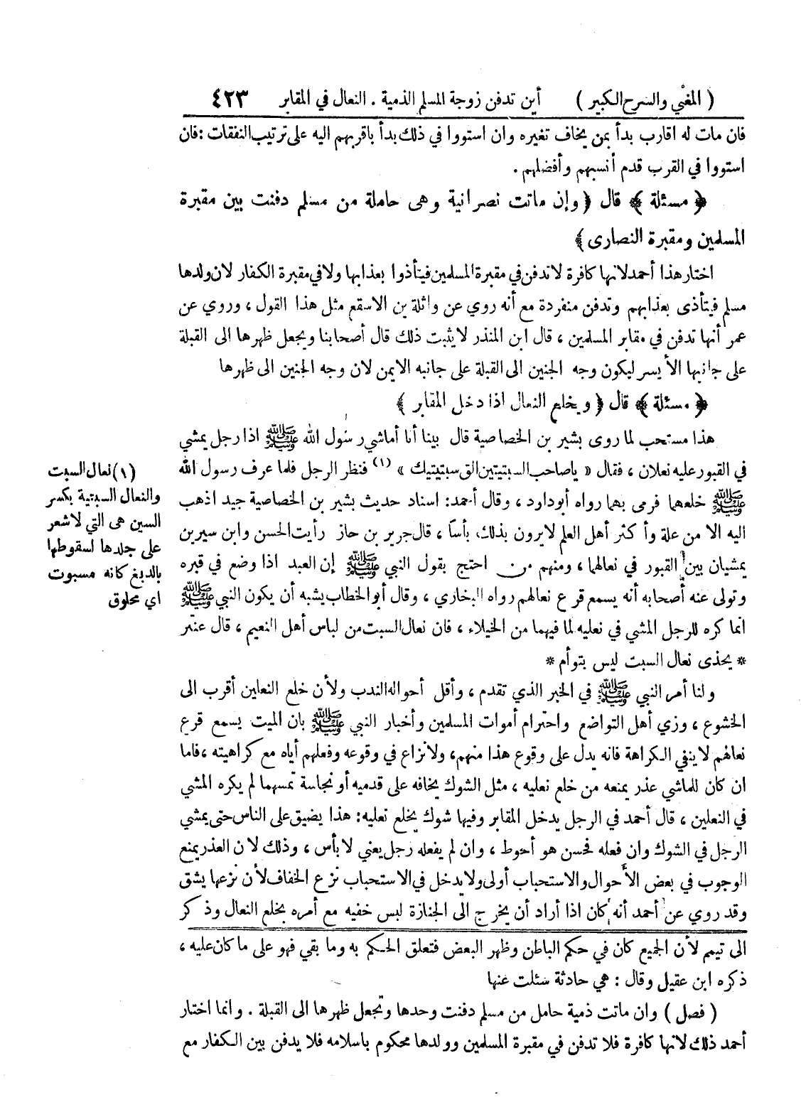 وانما اختار أحمد ذلك لأنها كافرة فلا تدفن في مقبرة المسلمين وولدها محكوم بإسلامه فلا يدفن بين الكفار مع