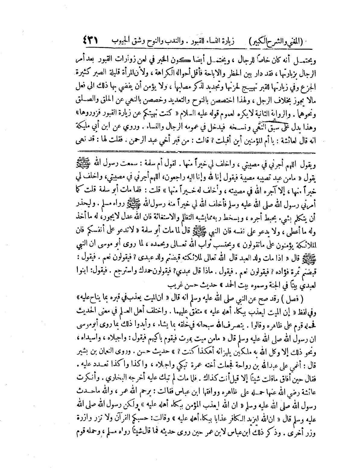 وليحذر أن يتكلم بشئ يحبط أجره، ويسخط ربه مما يشبه التظلم والاستغاثة فان الله عدل لا يجور، له ما أخذ وله ما أعطى، ولا يدعو على نفسه فإن النبي صلى الله عليه وسلم قال لما مات أبو سلمة " لا تدعو على أنفسكم فإن الملائكة يؤمنون على ما تقولون " ويحتسب ثواب الله تعالى وبحمده، لما روى أبو موسى أن النبي صلى الله عليه وسلم قال " إذا مات ولد العبد قال الله تعالى لملائكته قبضتم ولد عبدي؟ فيقولون نعم.