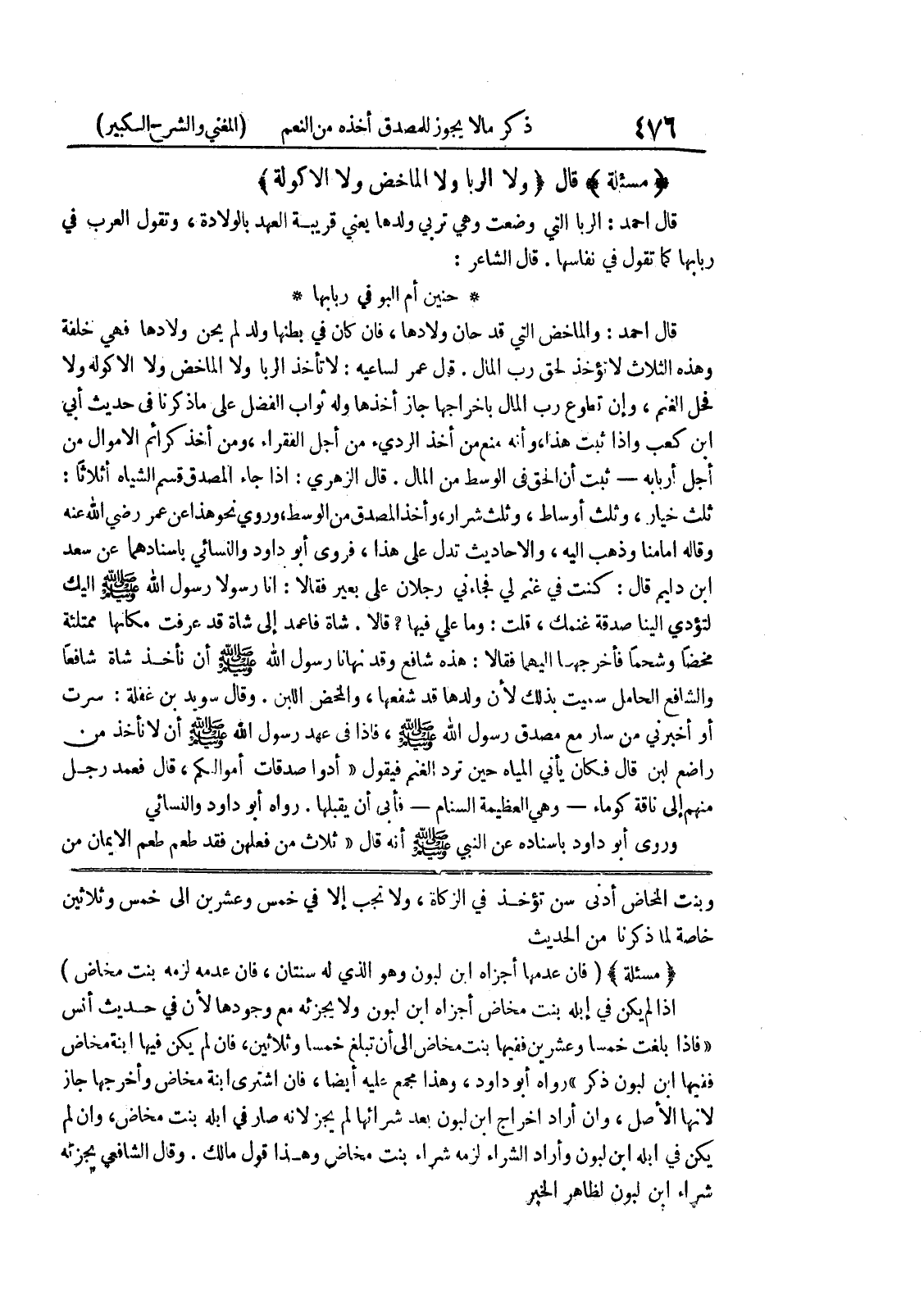 * (مسألة) * (فإن عدمها أجزاه ابن لبون وهو الذي له سنتان، فإن عدمه لزمه بنت مخاض) إذا لم يكن في إبله بنت مخاض أجزأه ابن لبون ولا يجزئه مع وجودها لأن في حديث أنس " فإذا بلغت خمسا وعشرين ففيها بنت مخاض إلى أن تبلغ خمساً وثلاثين، فإن لم يكن فيها ابنة مخاض ففيها ابن لبون ذكر " رواه أبو داود، وهذا مجمع عليه أيضاً، فإن اشترى ابنه مخاض وأخرجها جاز لانها الأصل، وان أراد اخراج ابن لبون بعد شرائها لم يجز لأنه صار في إبله بنت مخاض، وإن لم يكن في إبله ابن لبون وأراد الشراء لزمه شراء بنت مخاض وهذا قول مالك.