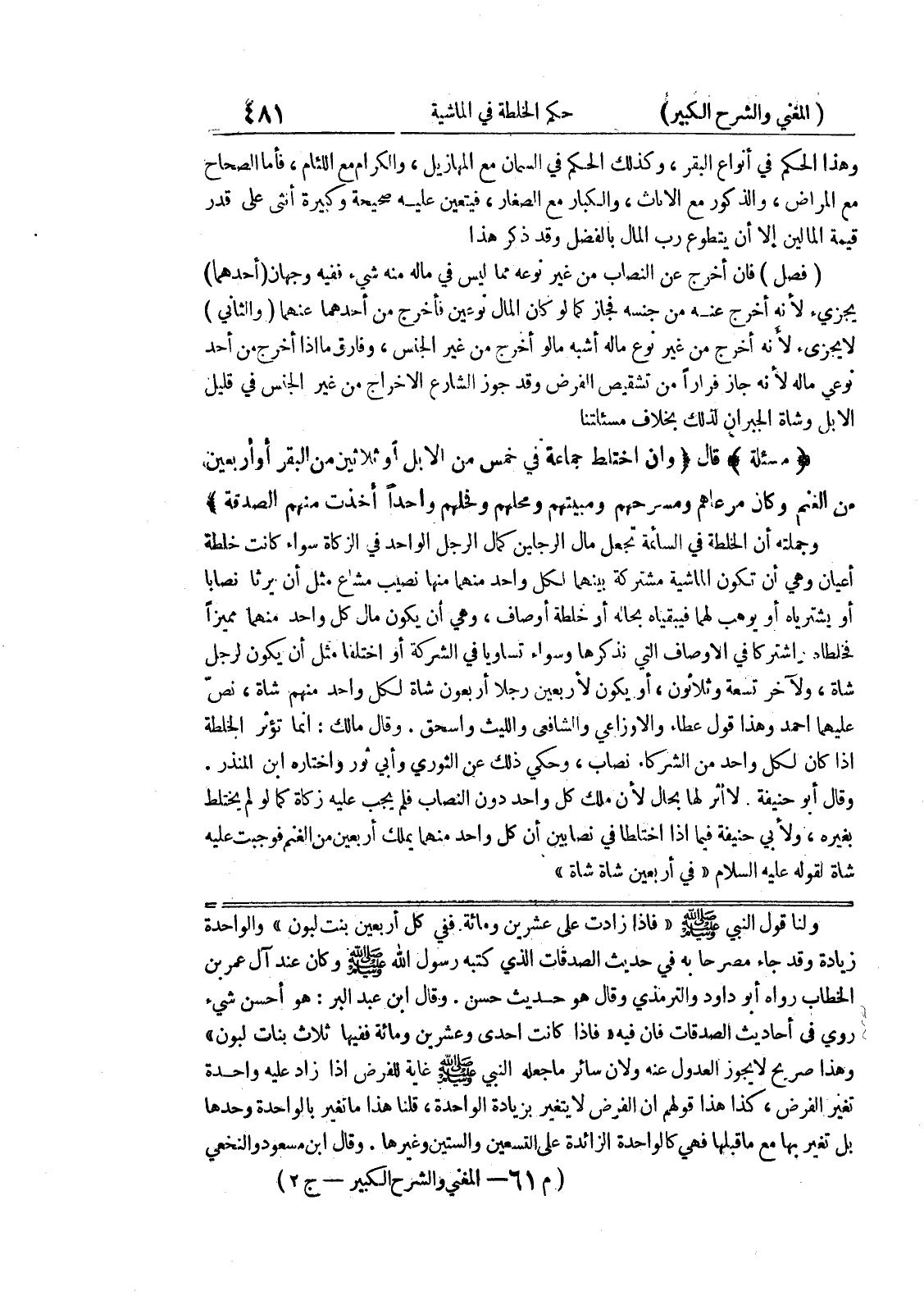 وقال ابن عبد البر: هو أحسن شئ روي في أحاديث الصدقات فان فيه " فإذا كانت إحدى وعشرين ومائة ففيها ثلاث بنات لبون " وهذا صريح لا يجوز العدول عنه ولان سائر ما جعله النبي صلى الله عليه وسلم غاية للفرض اذا زا عليه واحدة تغير الفرض، كذا هذا قولهم ان الفرض لا يتغير بزيادة الواحدة، قلنا هذا ما تغير بالواحدة وحدها بل تغير بها مع ما قبلها فهي كالواحدة الزائدة على التسعين والستين وغيرها.