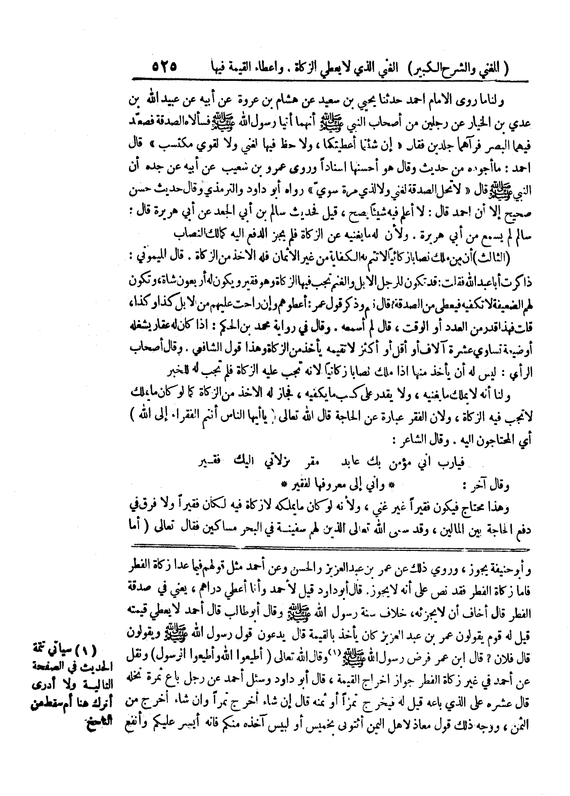 قال أبو داود قيل لاحمد وأنا أعطي دراهم، يعني في صدقة الفطر قال أخاف أن لا يجزئه، خلاف سنة رسول الله صلى الله عليه وسلم وقال أبو طالب قال أحمد لا يعطى قيمته قيل له قوم يقولون عمر بن عبد العزيز كان يأخذ بالقيمة قال يدعون قول رسول الله صلى الله عليه وسلم ويقولون قال فلان؟ قال ابن عمر فرض رسول الله صلى الله عليه وسلم (1) وقال الله تعالى (أطيعوا الله وأطيعوا الرسول) ونقل عن أحمد في غير زكاة الفطر جواز اخراج القيمة، قال أبو داود وسئل أحمد عن رجل باع ثمرة نخله قال عشره على الذي باعه قيل له فيخرج تمراً أو ثمنه قال إن شاء أخرج تمرا وان شاء أخرج من الثمن، ووجه ذلك قول معاذ لاهل اليمن أئتوني بخميس أو لبيس آخذه منكم فانه أيسر عليكم وأنفع