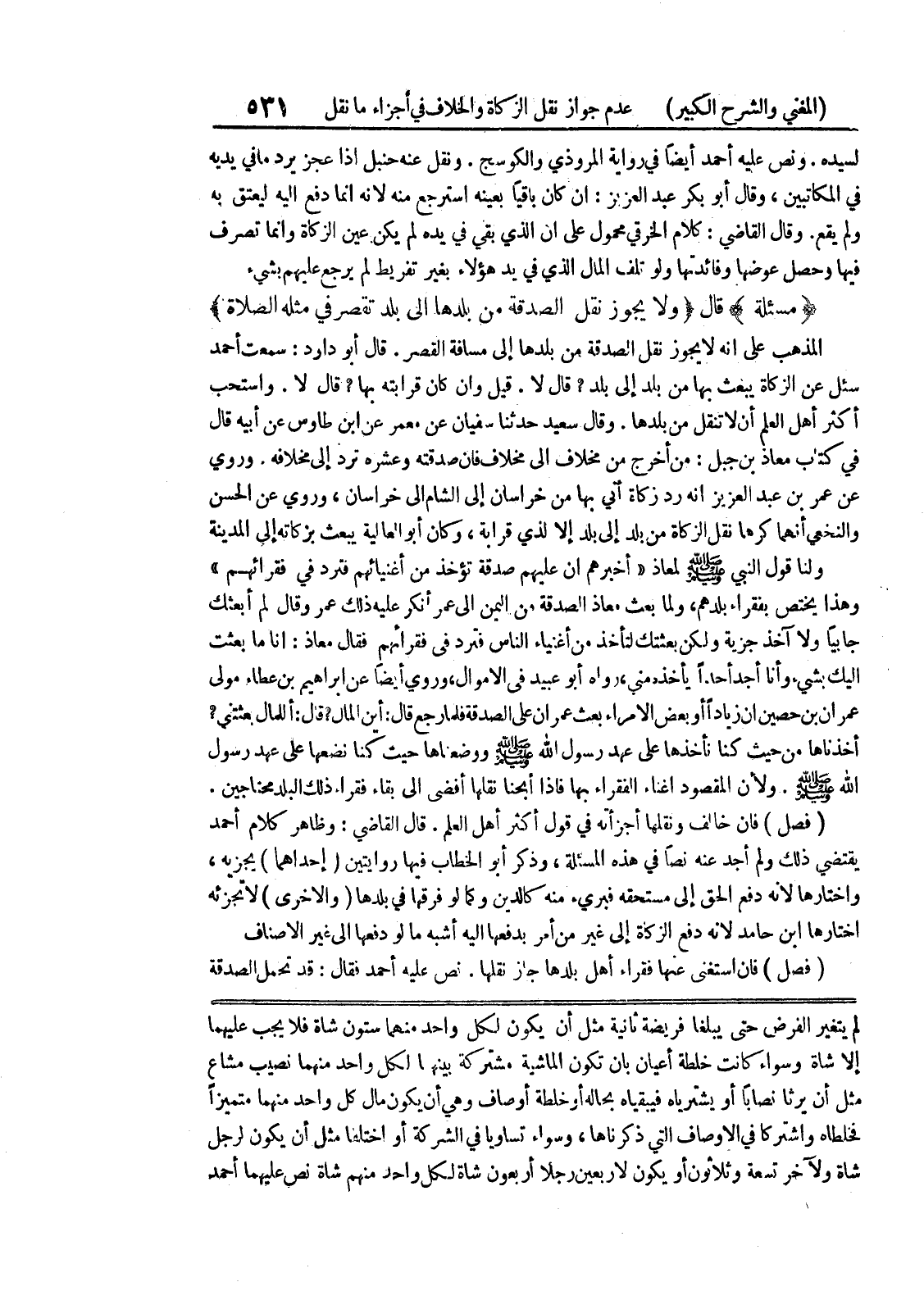 لم يتغير الفرض حتى يبلغا فريضة ثانية مثل أن يكون لكل واحد منهما ستون شاة فلا يجب عليهما إلا شاة وسواء كانت خلطة أعيان بان تكون الماشية مشتركة بينهما لكل واحد منهما نصيب مشاع مثل أن يرثا نصاباً أو يشترياه فيبقياه بحاله أو خلطة أوصاف وهي أن يكون مال كل واحد منهما متميزاً فخلطاه واشتركا في الأوصاف التي ذكرناها، وسواء تساويا في الشركة أو اختلفا مثل أن يكون لرجل شاة ولآخر تسعة وثلاثون أو يكون لأربعين رجلا أربعون شاة لكل واحد منهم شاة نص عليهما أحمد