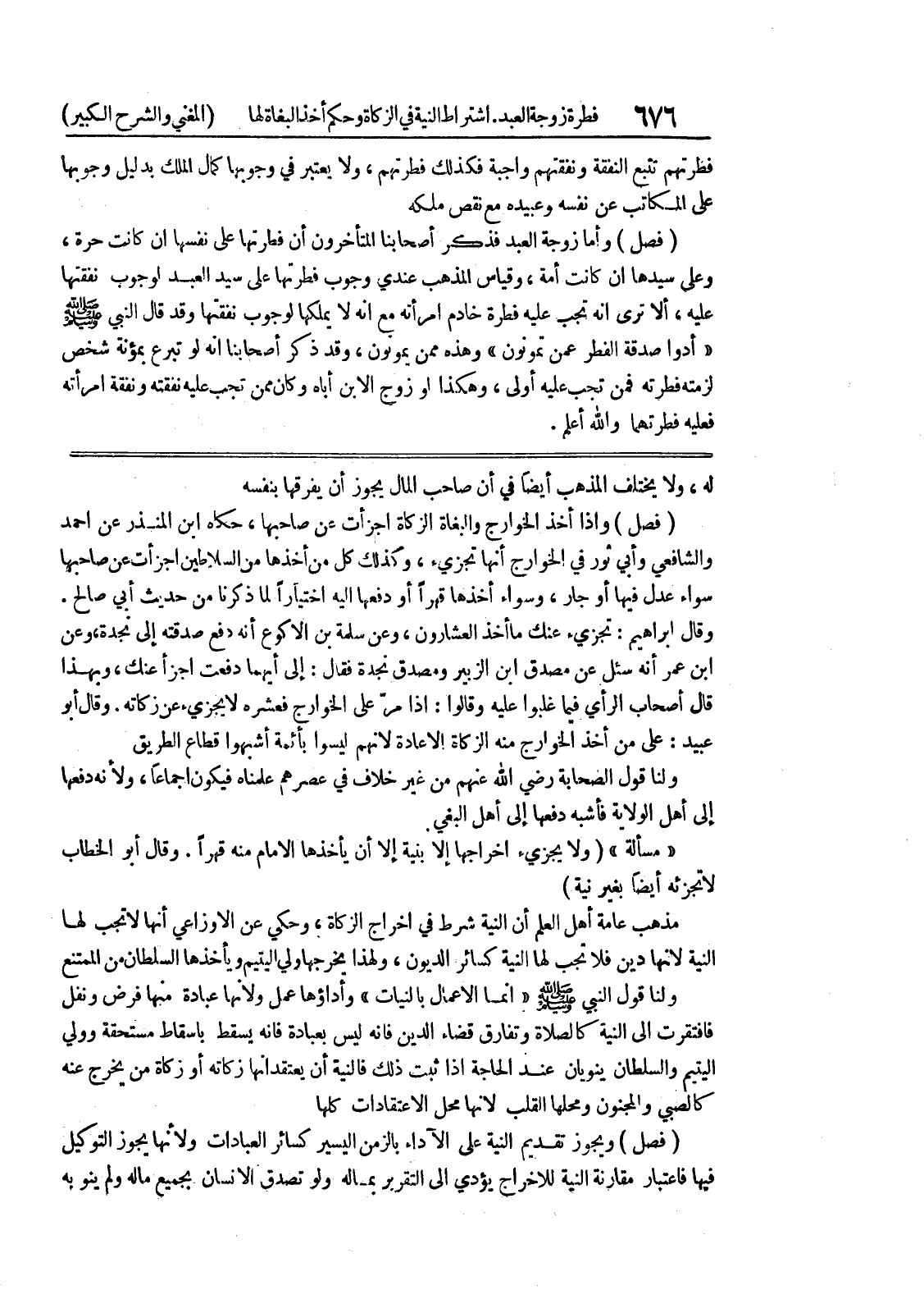 (فصل) ويجوز تقديم النية على الآداء بالزمن اليسير كسائر العبادات ولأنها يجوز التوكيل فيها فاعتبار مقارنة النية للاخراج يؤدي الى التقرين بماله ولو تصدق الانسان بجميع ماله ولم ينو به