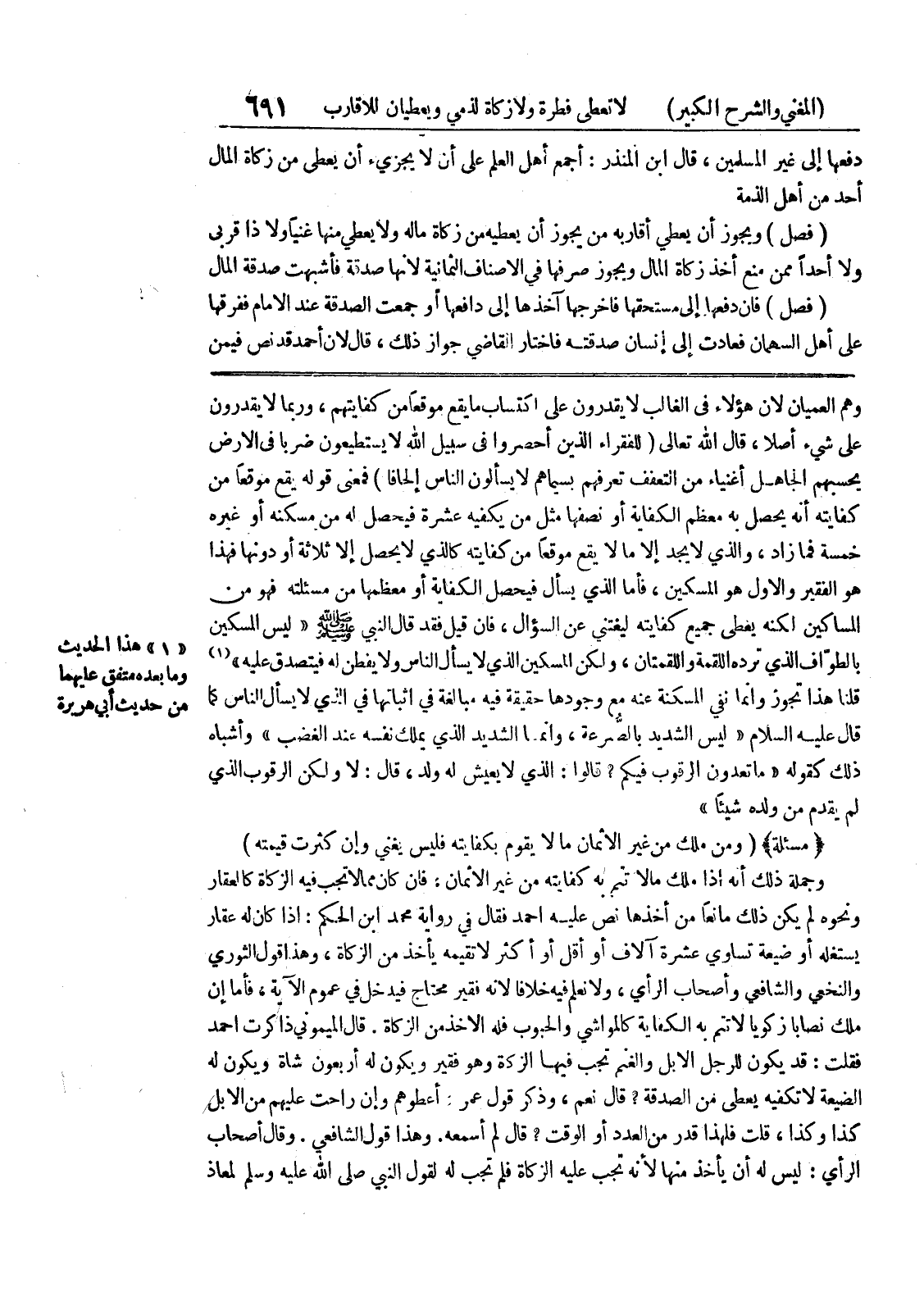 وهم العميان لان هؤلاء في الغالب لا يقدرون على اكتساب ما يقع موقعاً من كفايتهم، وربما لا يقدرون على شئ أصلا، قال الله تعالى (للفقراء الذين أحصروا في سبيل الله لا يستطيعون ضربا في الأرض يحسبهم الجاهل أغنياء من التعفف تعرفهم بسيماهم لا يسألون الناس إلحافا) فمعنى قوله يقع موقعاً من كفايته أنه يحصل به معظم الكفاية أو نصفها مثل من يكفيه عشرة فيحصل له من مسكنه أو غيره خمسة فما زاد، والذي لا يجد إلا ما لا يقع موقعاً من كفايته كالذي لا يحصل إلا ثلاثة أو دونها فهذا هو الفقير والاول هو المسكين، فأما الذي يسأل فيحصل الكفاية أو معظمها من مسئلته فهو من المساكين لكنه يعطى جميع كفايته ليغتني عن السؤال، فإن قيل فقد قال النبي صلى الله عليه وسلم " ليس المسكين بالطواف الذي ترده اللقمة واللقمتان، ولكن المسكين الذي لا يسأل الناس ولا يفطن له فيتصدق عليه " (1) قلنا هذا تجوز وانما نفي المسكنة عنه مع وجودها حقيقة فيه مبالغة في اثباتها في الذي لا يسأل الناس كما قال عليه السلام " ليس الشديد بالصرعة، وإنما الشديد الذي يملك نفسه عند الغضب " وأشباه ذلك كقوله " ما تعدون الرقوب فيكم؟ قالوا: الذي لا يعيش له ولد، قال: لا ولكن الرقوب الذي لم يقدم من ولده شيئاً "