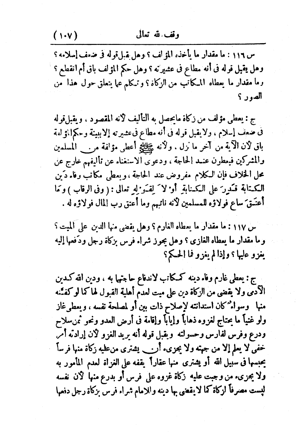 س116: ما مقدار ما يأخذه المؤلف؟ وهل يقبل قوله في ضعف إسلامه؟ وهل يقبل قوله في أنه مطاع في عشيرته؟ وهل حكم المؤلف باق أم انقطع؟ وما مقدار ما يعطاه المكاتب من الزكاة؟ وتكلم عما يتعلق حول هذا من الصور؟