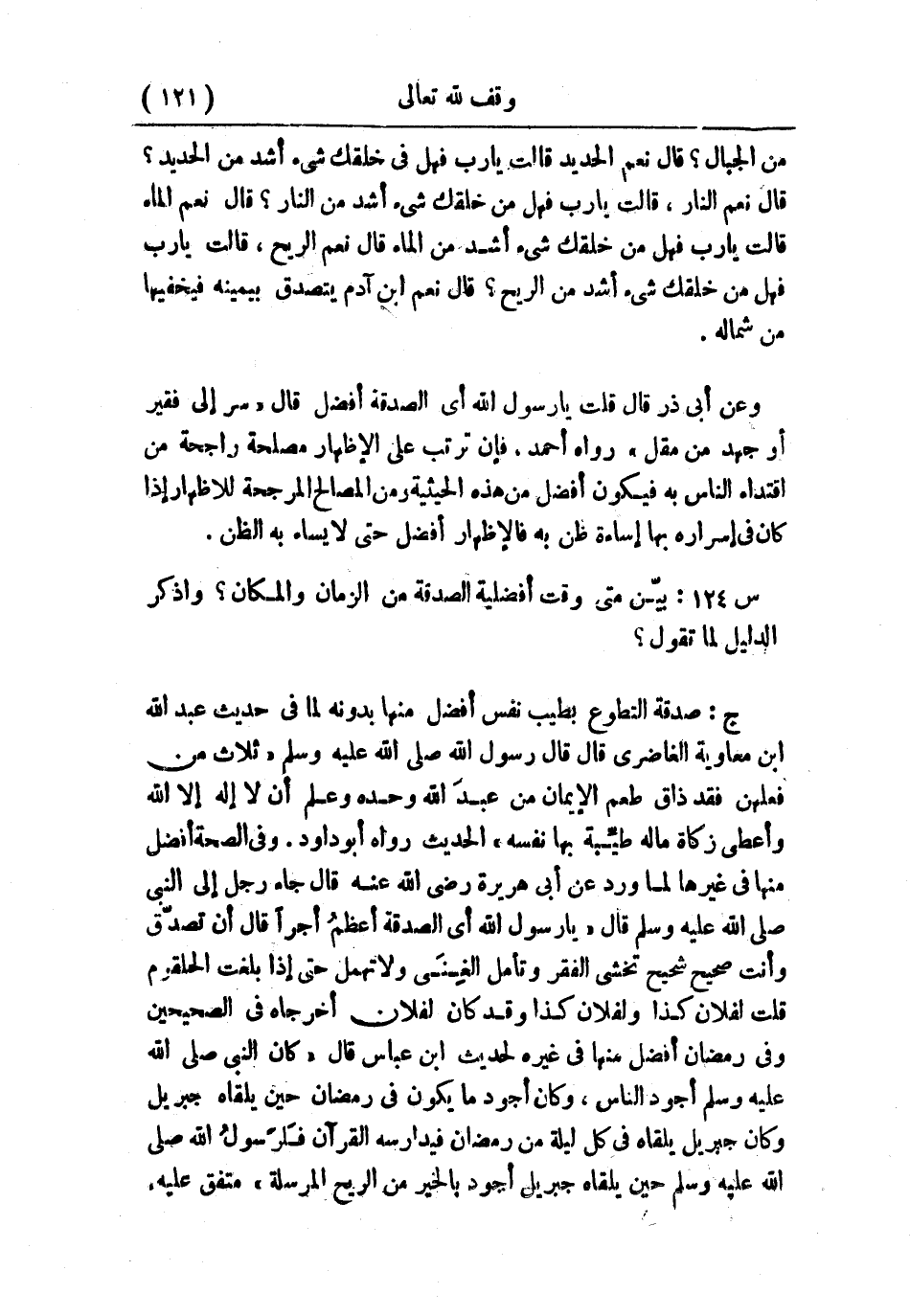 س125: بيّن متى وقت أفضلية الصدقة من الزمان والمكان؟ واذكر الدليل لما تقول؟