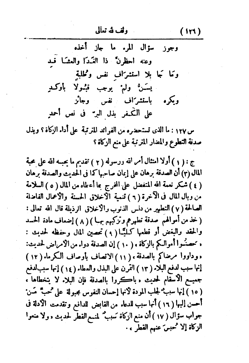 س128: ما الذي تستحضره من الفوائد المترتبة على أداء الزكاة؟ وبذل صدقة التطوع والمضار المترتبة على منع الزكاة؟