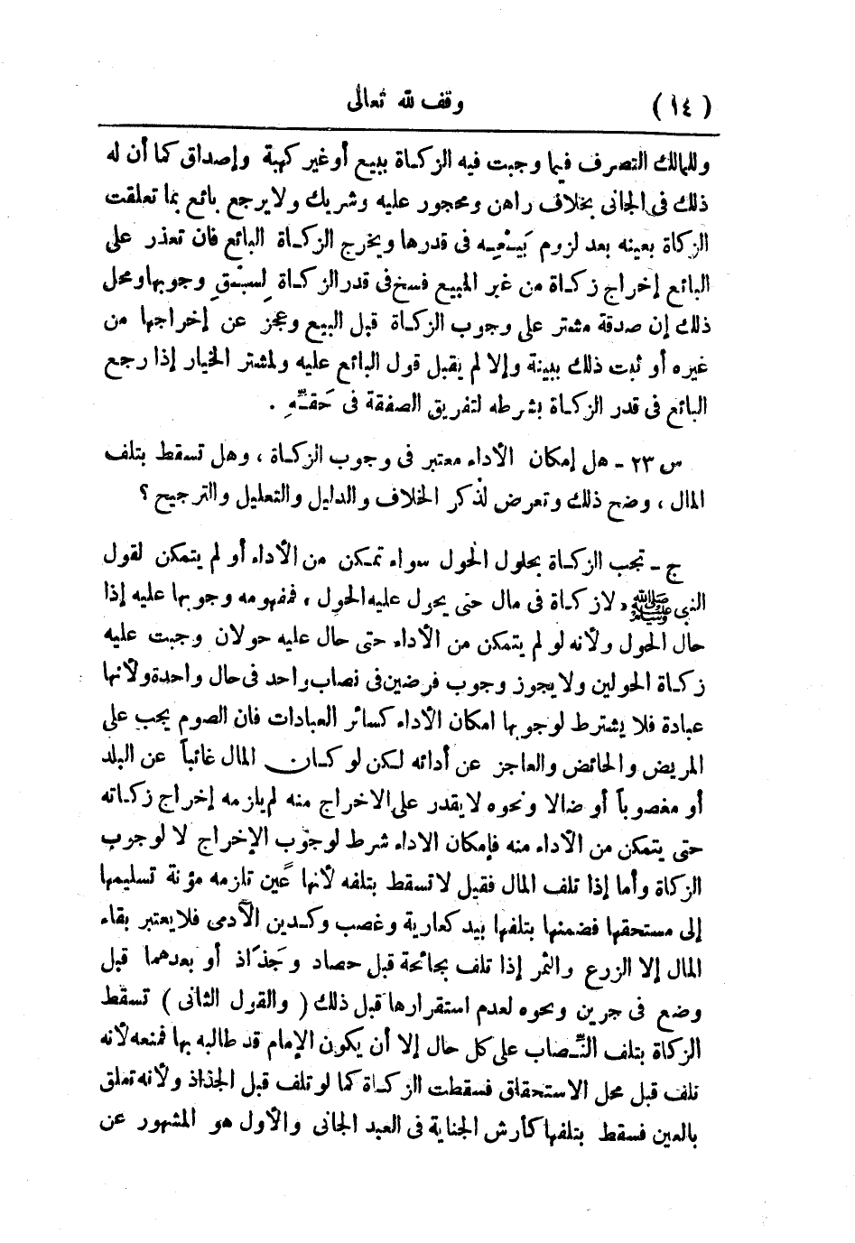 س23: هل إمكان الأداء معتبر في وجوب الزكاة؟ وهل تسقط بتلف المال؟ وضح ذلك وتعرض لذكر الخلاف والدليل والتعليل والترجيح؟