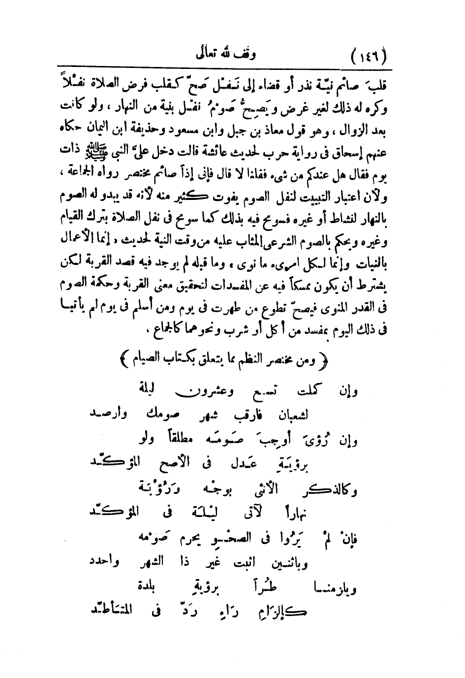 ومن مختصر النظم مما يتعلق بكتاب الصيام