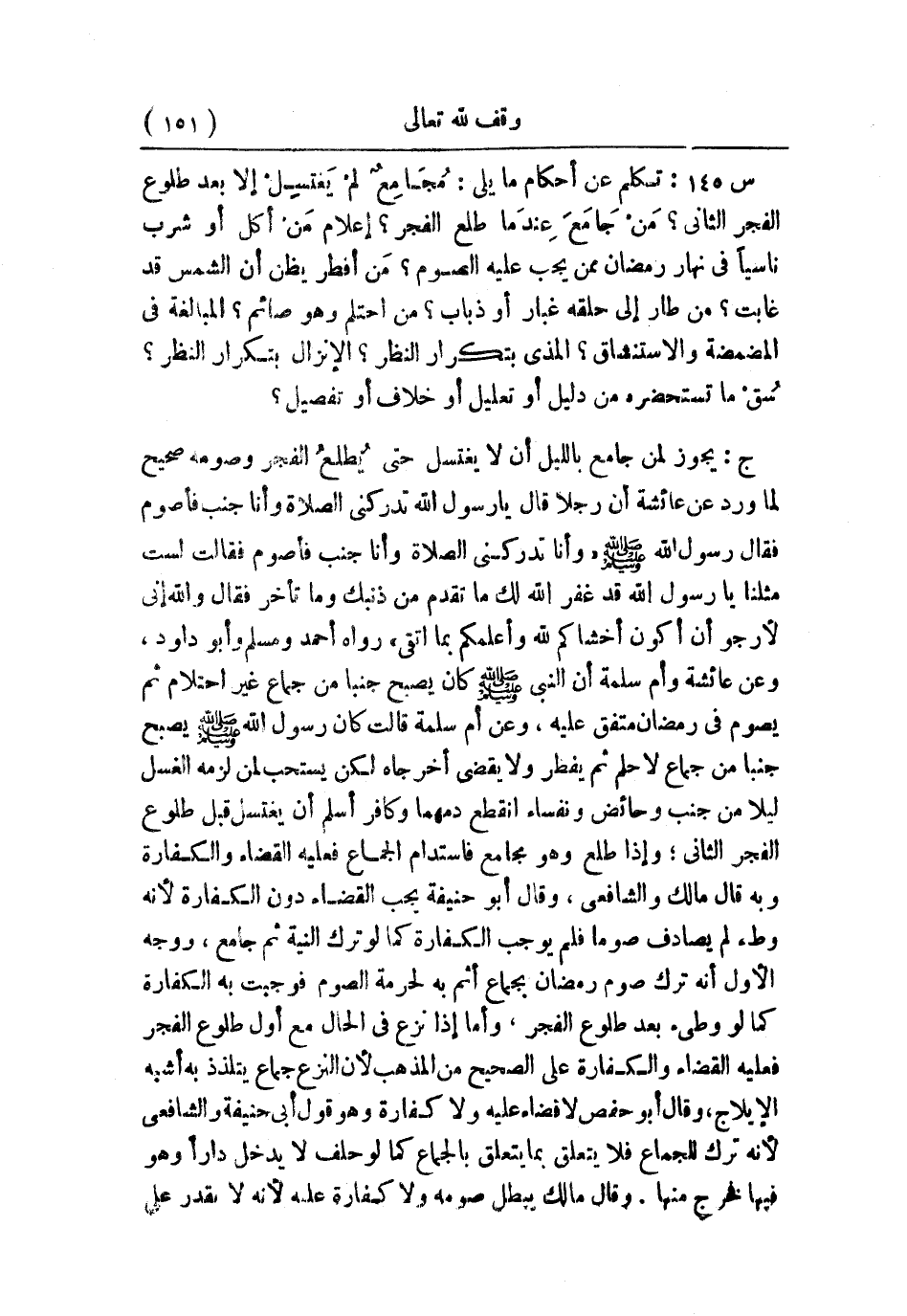 س147: تكلم عن أحكام ما يلي: مُجَامِعٌ لمْ يغتسل إلا بعد طلوع الفجر الثاني؟ مَنْ جَامَعَ عِندَما طلع الفجر؟ إعلام مَنْ أكل أو شرب ناسيًا في نهار رمضان ممن يجب عليه الصوم؟ مَن أفطر يظن أن الشمس قد غابت؟ من طال إلى حلقه غبار أو ذباب؟ من احتلم وهو صائم؟ المبالغة في المضمضمة والاستنشاق؟ المذي بتكرار النظر؟ الإنزال بتكرار النظر؟ سُقْ ما تستحضره من دليل أو تعليل أو خلاف أو تفضيل؟