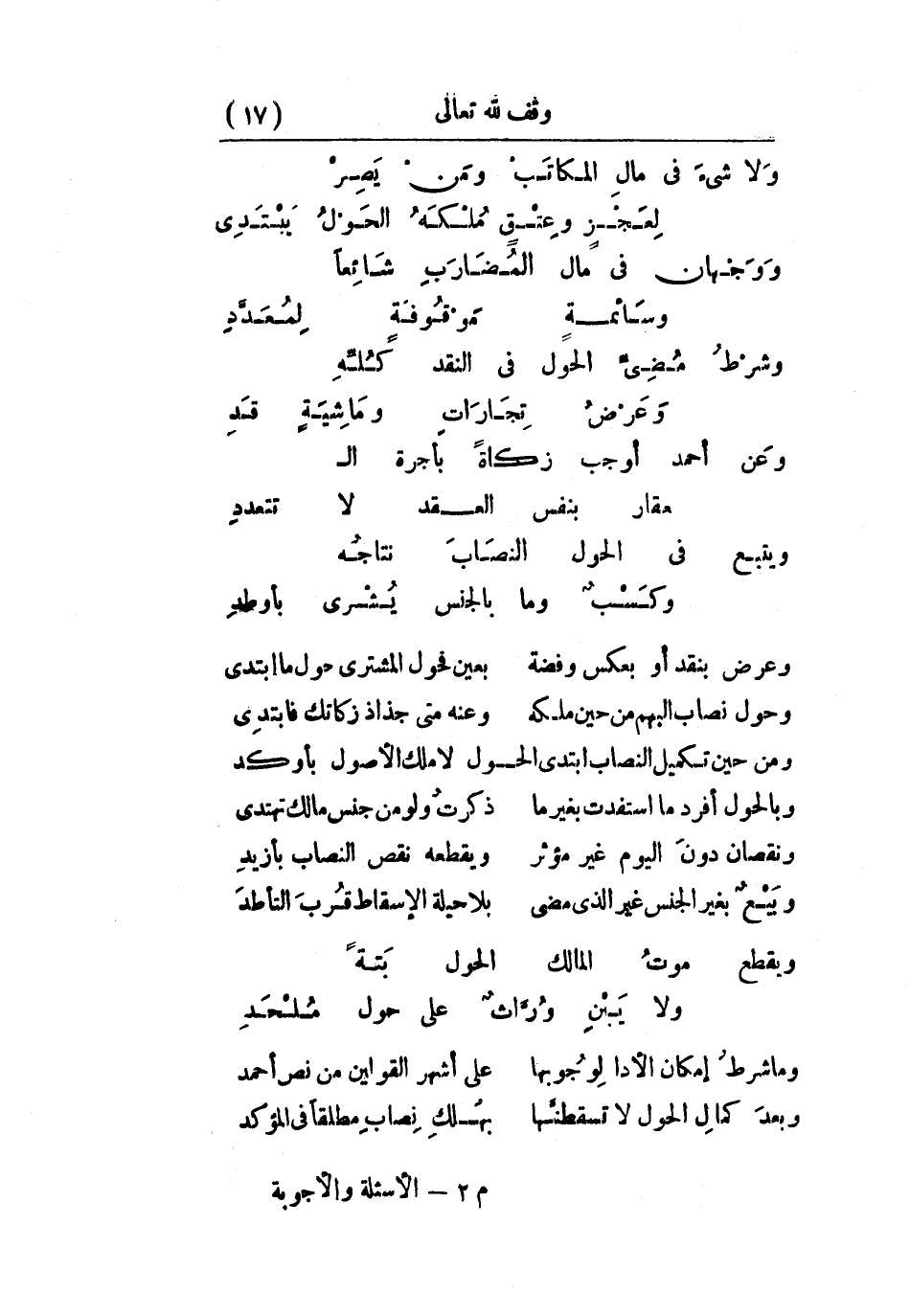 لِعَجْزٍ وعِتْقٍ مُلْكَهُ الحَوْلُ يَبْتَدِي