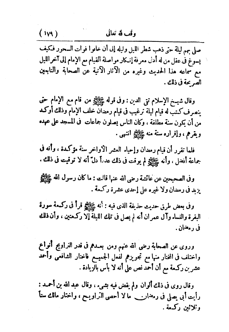 فلما تقرر أن قيام رمضان وإحياء العشر الأواخر سُّنة مؤكدة، وأنه في جماعة أفضل، وأنه - صلى الله عليه وسلم - لم يوقت في ذلك عددًا دلّ أنه لا توقيت في ذلك.