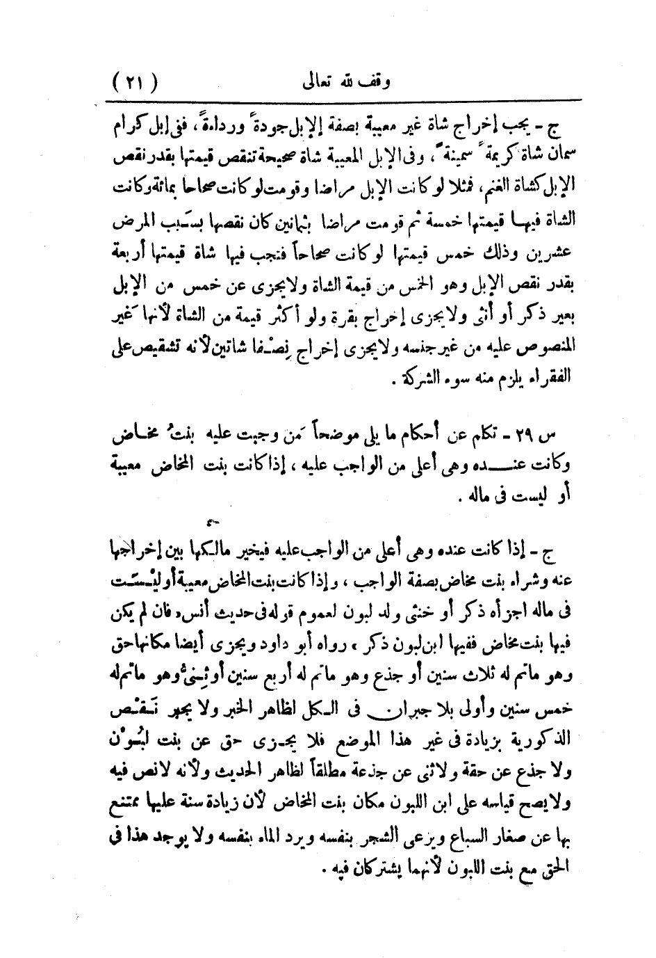 س29: تكلم عن أحكام ما يلي موضحًا من وجبت عليه بنتُ مخاض وكانت عنده وهي أعلى من الواجب عليه، إذا كانت بنت المخاض معيبة أو ليست في ماله.