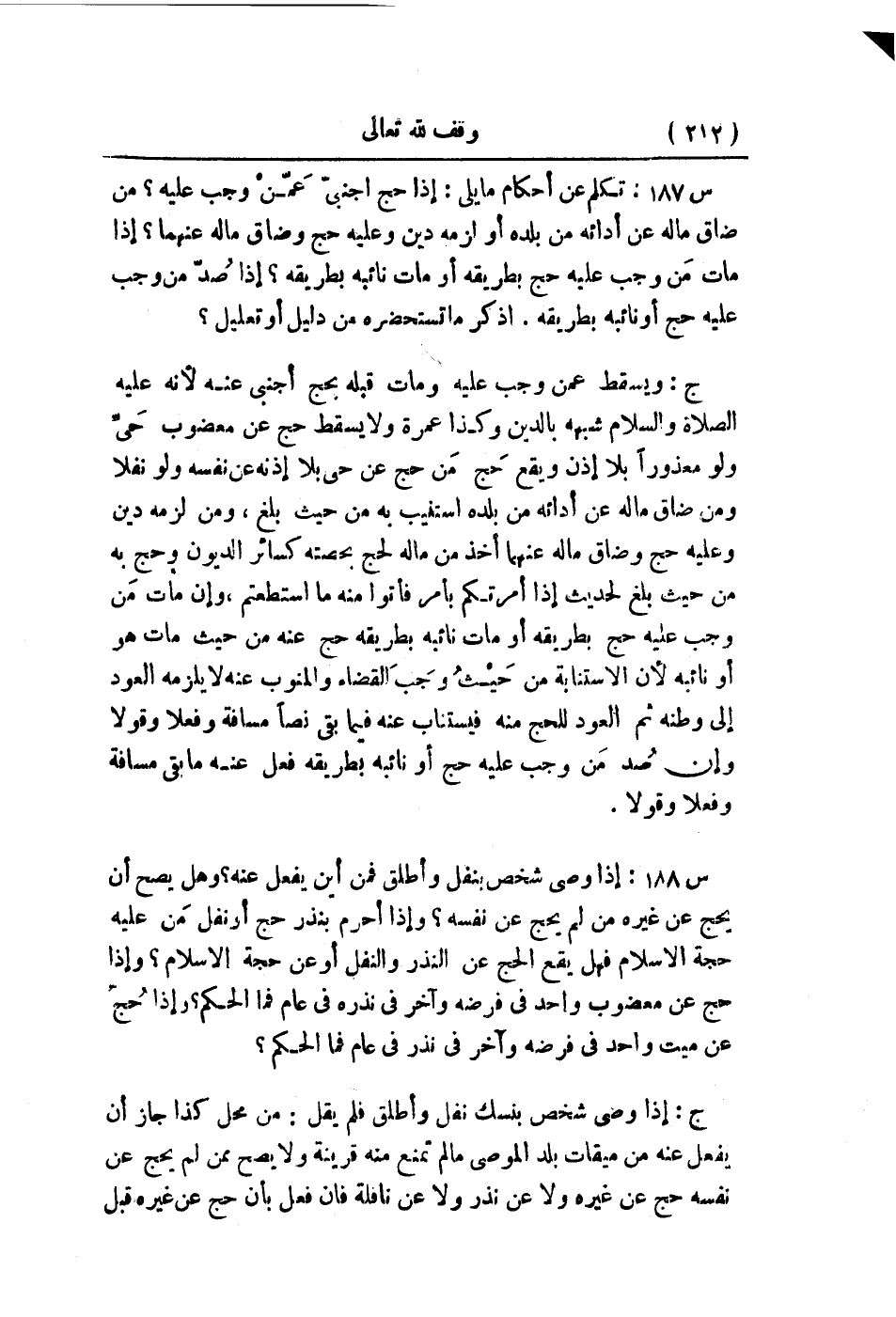 س189: تكلم عن أحكام ما يلي: إذا حج أجنبيّ عَمّنْ وجب عليه؟ من ضاق ماله في أدائه من بلده أو لزمه دين وعليه حج وضاق ماله عنهما؟ إذا مات مَن وجب عليه حج بطريقه أو مات نائبه بطريقه؟ إذا صُدّ من وجب عليه حج أو نائبه بطريقه. اذكر ما تستحضره من دليل أو تعليل؟