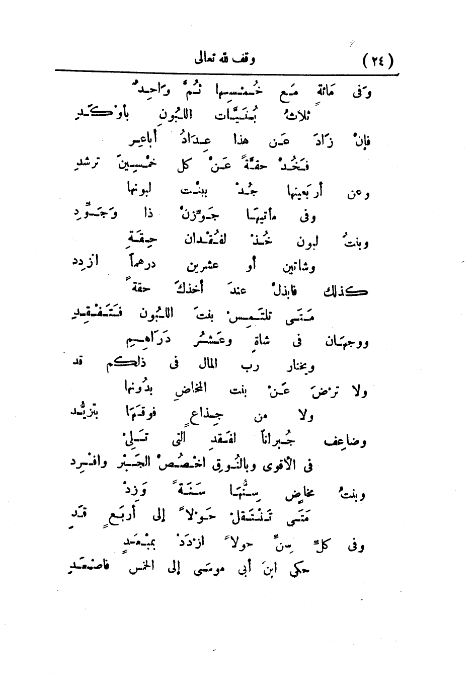 ففي الخمسِ والعشرينَ بنتُ مخاضِها ... فإنْ فُقِدَتْ بابن اللبُون لهَا جُدِ