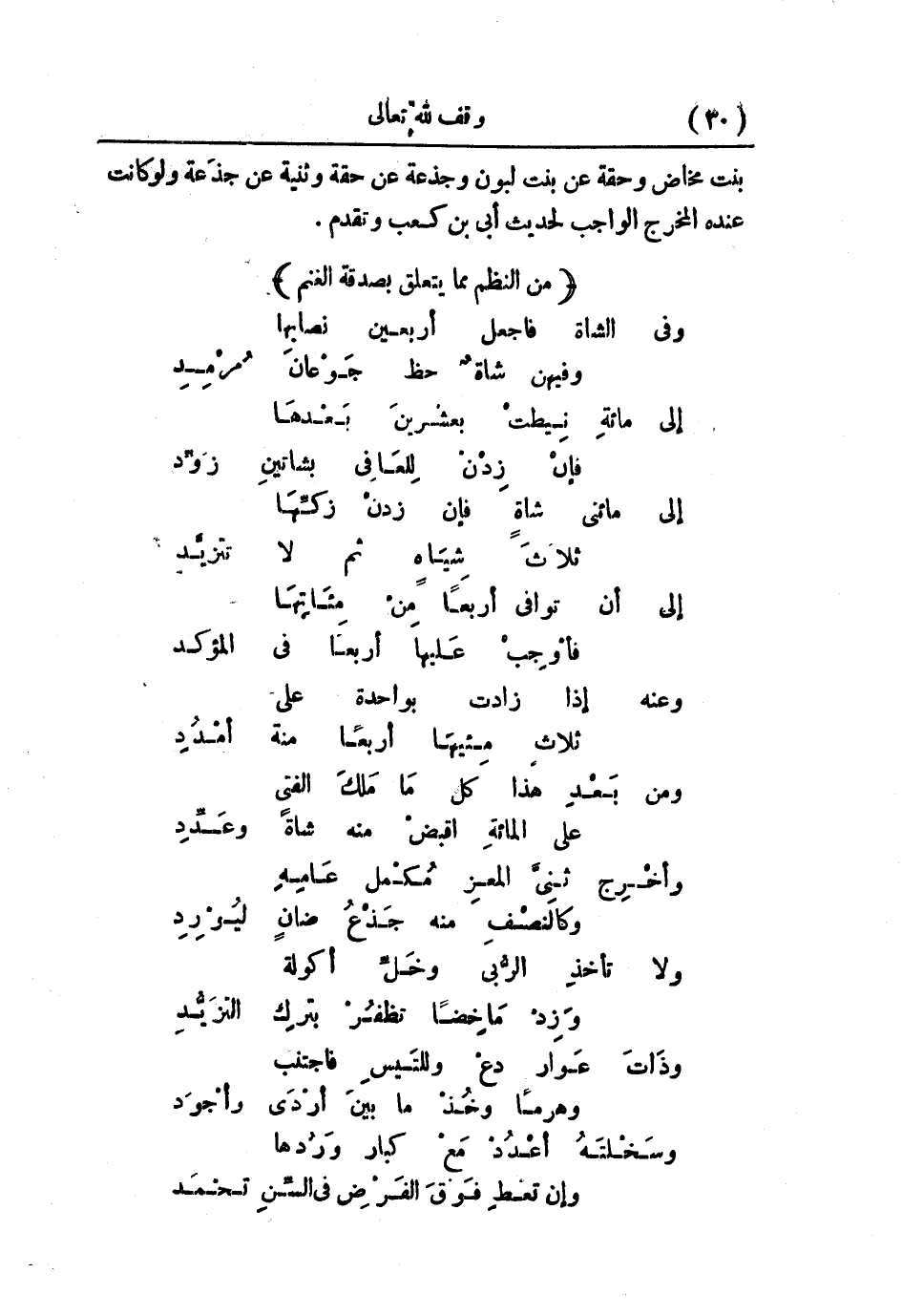 ومن بَعْدِ هذا كل مَا مَلكَ الفتى ... على المائةِ اقبضْ منه شاةً وعَدِّدِ