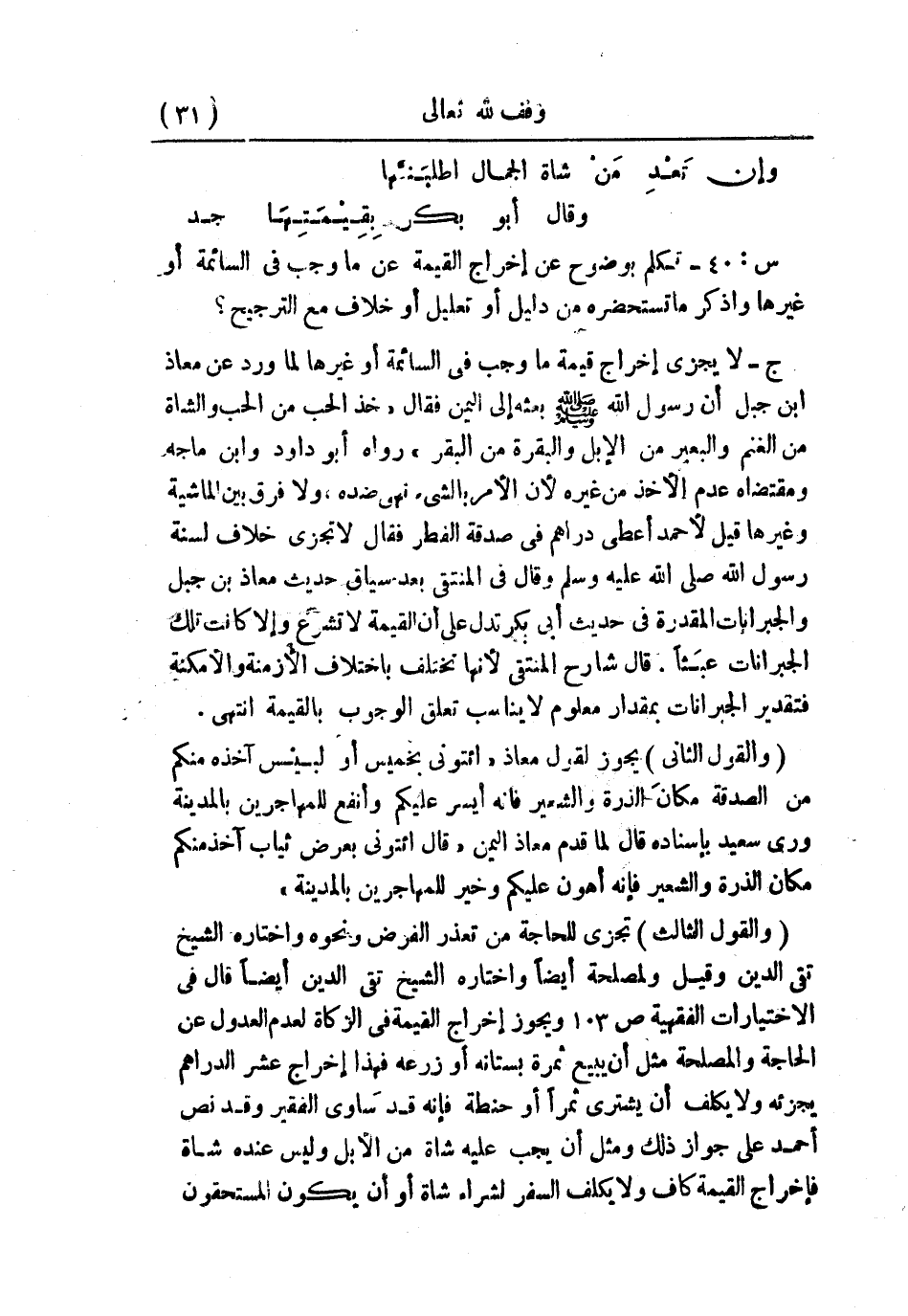 س40: تكلم بوضوح عن إخراج القيمة عن ما وجب في السائمة أو غيرها، واذكر ما تستحضره من دليل أو تعليل أو خلاف مع الترجيح.