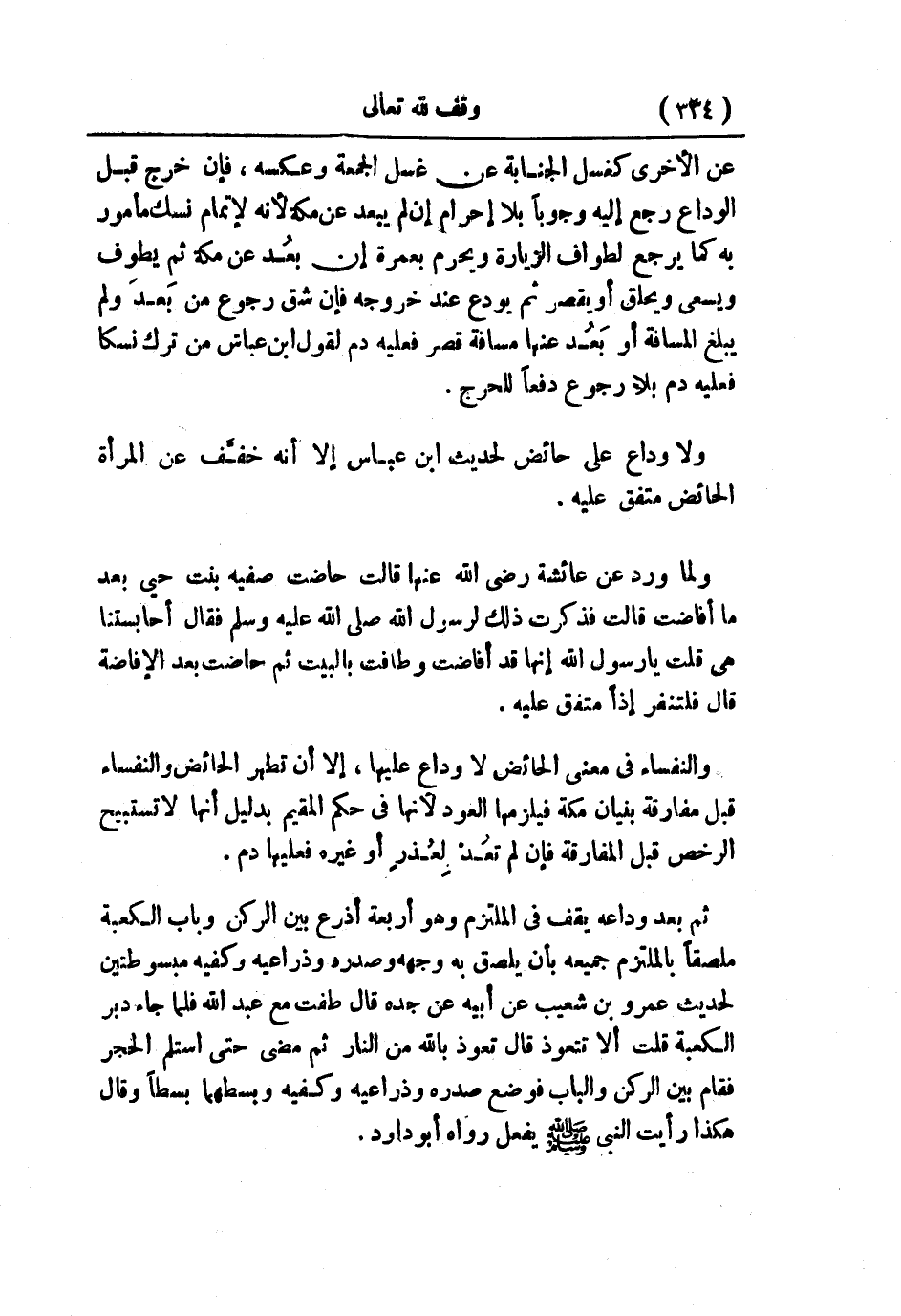 ولما ورد عن عائشة - رضي الله عنها - قالت: حاضت صفية بنت حيي بعد ما أفاضت، قالت: فذكرت ذلك لرسول الله - صلى الله عليه وسلم -، فقال: «أحابستنا هي؟» قلت: يا رسول الله، إنها قد أفاضت وطافت بالبيت، ثم حاضت بعد الإفاضة، قال: «فلتنفر إذًا» متفق عليه.