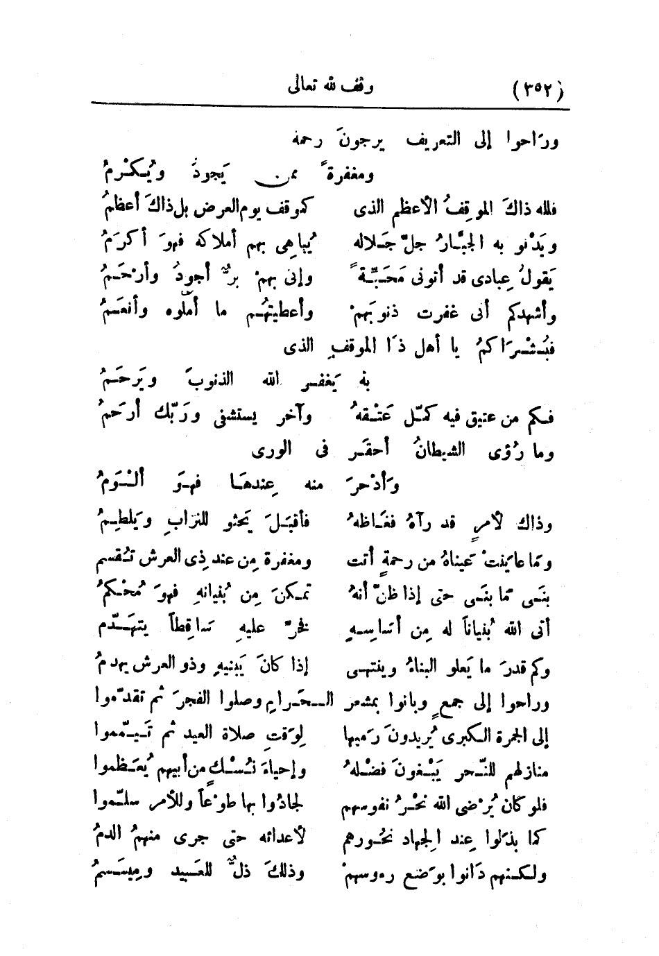 فبُشْرَاكمُ يا أهل ذَا الموقفِ الذي ... به يَغفر الله الذنوبَ ويَرحَمُ