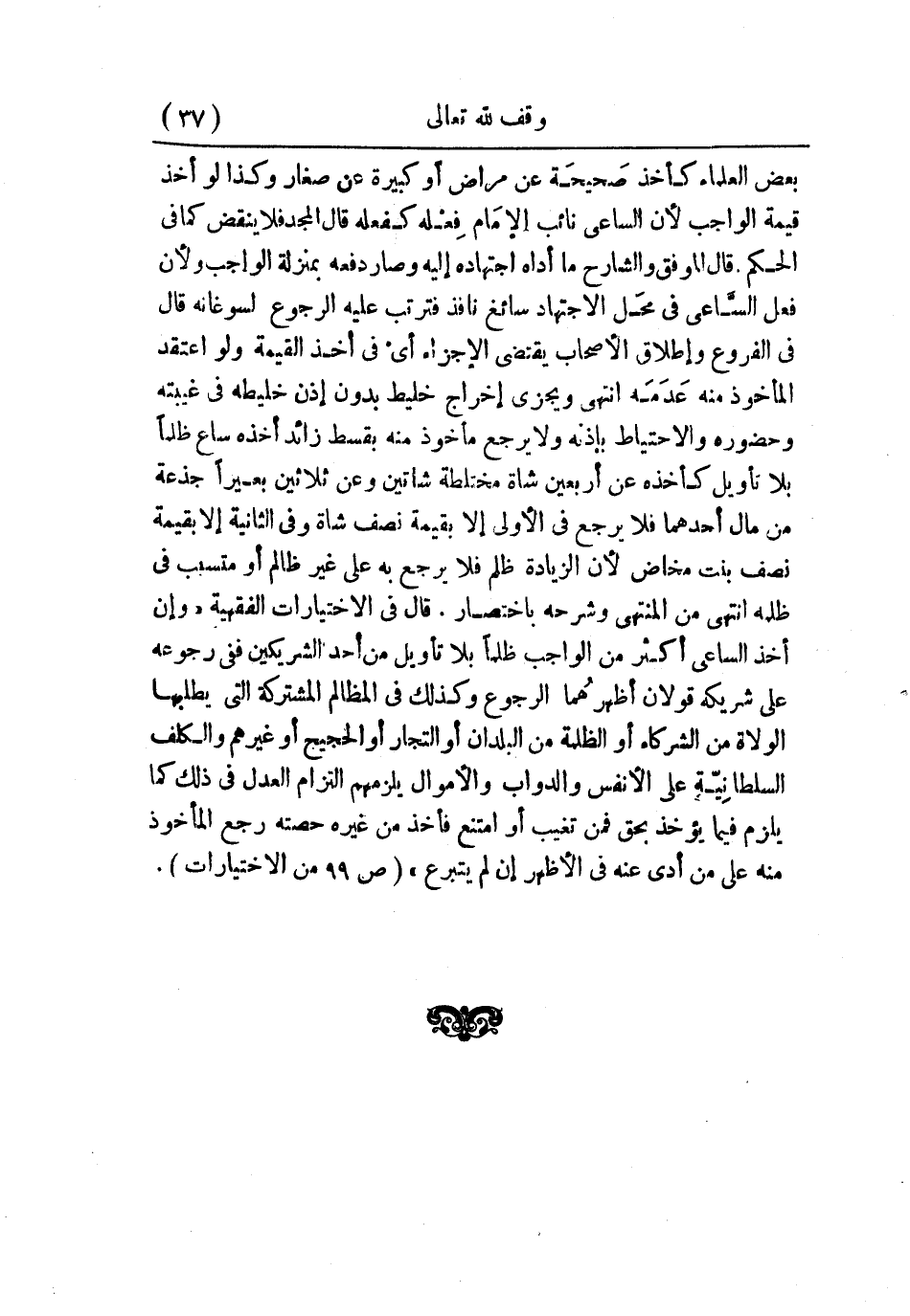 بعض العلماء كأخذ صحيحة عن مراض أو كبيرة عن صغار وكذا لو أخذ قيمة الواجب؛ لأن الساعي نائب الإمام فعله كفعله، قال المجد: فلا ينقض كما في الحكم، قال الموفق والشارح: ما أداه اجتهاده إليه وصار دفعه بمنزلة الواجب؛ ولأن فعل الساعي في محل الاجتهاد سائغ نافذ فترتب عليه الرجوع لسوغانه، قال في الفروع: وإطلاق الأصحاب يقتضي الإجزاء أي في أخذ القيمة ولو اعتقد المأخوذ منه عدمه. انتهى. ويجزي إخراج خليط بدون إذن خليطه في غيبته وحضوره والاحتياط بإذنه ولا يرجع مأخوذ منه بقسط زائد أخذه ساع ظلمًا بلا تأويل كأخذه عن أربعين شاة مختلطة شاتين، وعن ثلاثين بعيرًا جذعة من مال أحدهما فلا يرجع في الأولى إلا بقيمة نصف شاة، وفي الثانية إلا بقيمة نصف بنت مخاض؛ لأن الزيادة ظلم فلا يرجع به على غير ظالم أو متسبب في ظلمه. انتهى من «المنتهى وشرحه» باختصار. قال في «الاختيارات الفقهية» ؛ وإن أخذ الساعي أكثر من الواجب ظلمًا بلا تأويل من أحد الشريكين ففي رجوعه على شريكه قولان أظهرهُما الرجوع وكذلك في المظالم المشتركة التي يطلبها الولاة من الشركاء أو الظلمة من البلدان أو التجار أو الحجيج أو غيرهم والكلف السلطانيّة على الأنفس والدواب والأموال يلزمهم التزام العدل في ذلك كما يلزم فيما يؤخذ بحق فمن تعيب أو امتنع فأخذ من غيره حصته يرجع المأخوذ منه على من أدى عنه في الأظهر إن لم يتبرع (ص99) من «الاختيارات» .