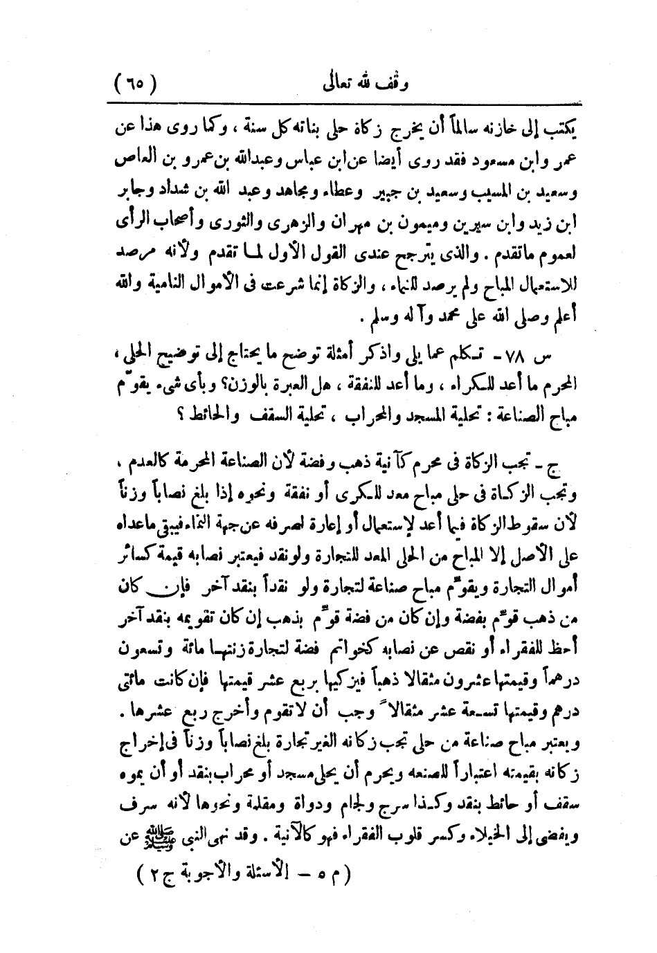 س78: تكلم عما يلي واذكر أمثلة توضح ما يحتاج إلى توضيح: الحلي، المحرم ما أعد للكراء، وما أعد للنفقة، هل العبرة بالوزن؟ وبأي شيء يقوم مباح الصناعة: تحلية المسجد والمحراب، تحلية السقف والحائط؟