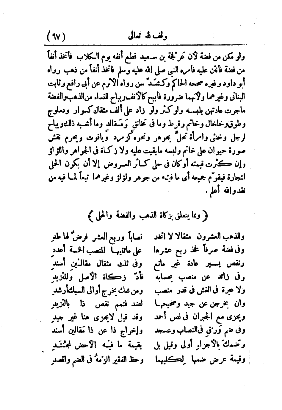 وللذهب العشرون مثقالاً لا اتخد ... نصابًا وربع العشر فرضٌ لها طدِ
