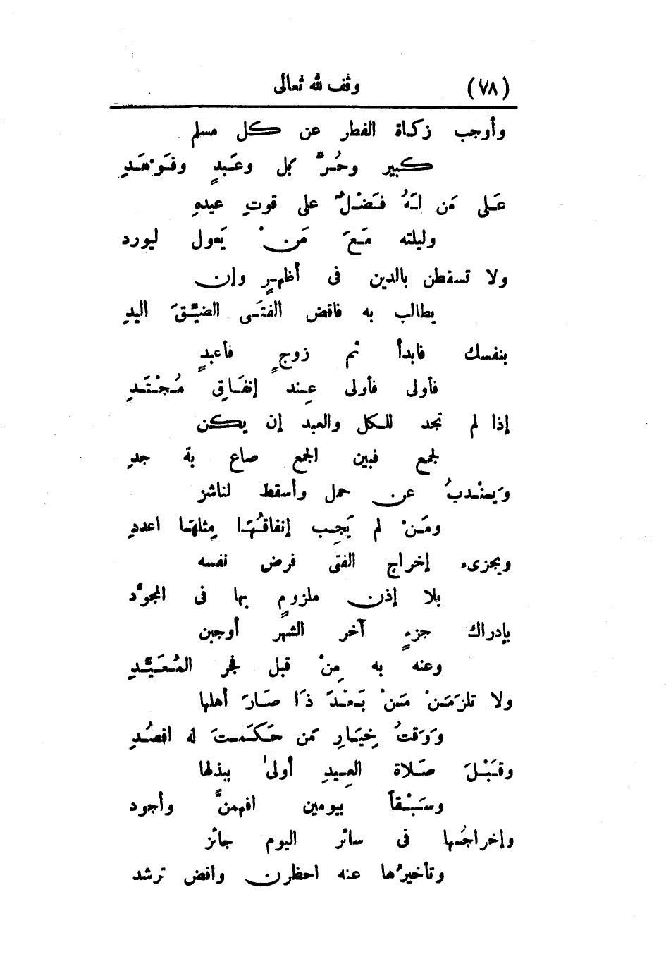 وأوجب زكاة الفطر عن كل مسلم ... كبير وحُرٍّ بَل وعَبدٍ وفَوْهَدِ
