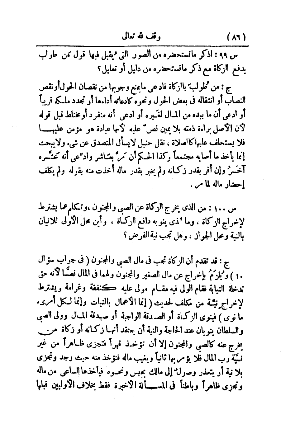 س100: من الذي يخرج الزكاة عن الصبي والمجنون، وتكلم عما يشترط لإخراج الزكاة، وما الذي ينوبه دافع الزكاة، وأين محل الأولى للإتيان بالنية ومحل الجواز، وهل تجب نية الفرض؟