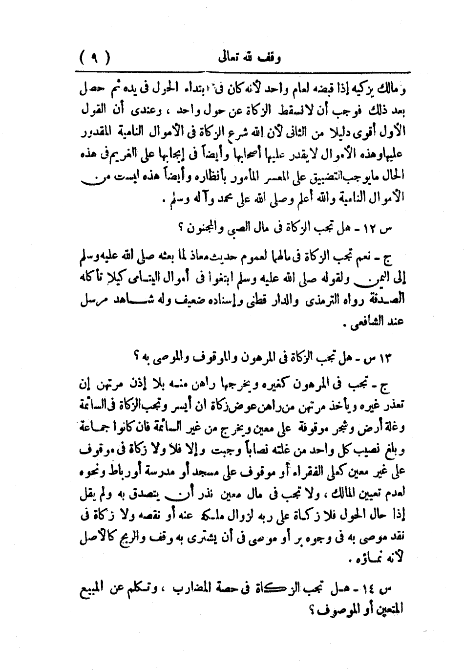 س13: هل تجب الزكاة في المرهون والموقوف والموصى به؟