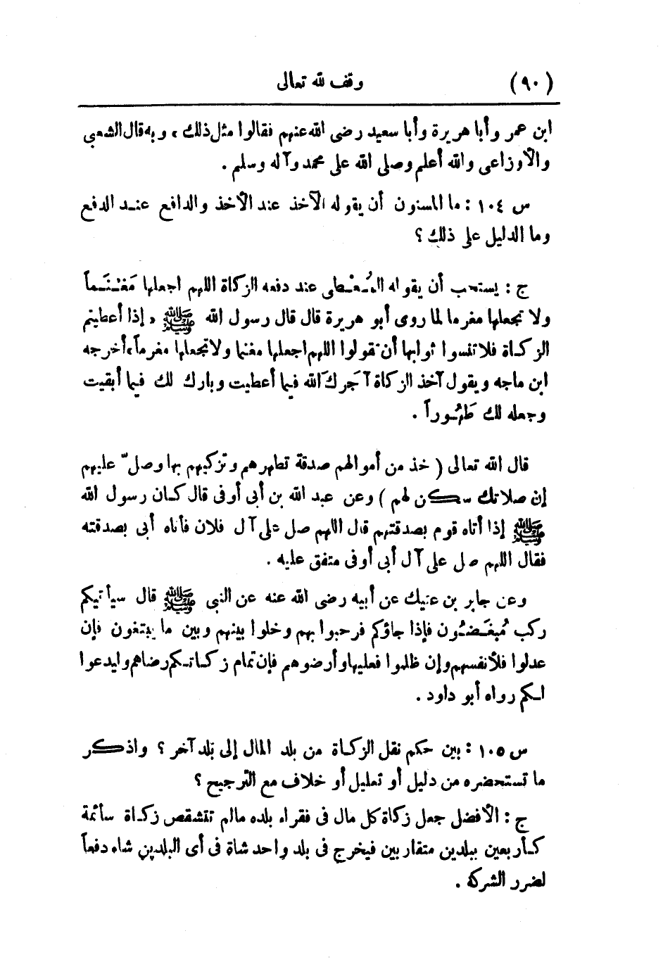 س104: ما المسنون أن يقوله الآخذ عند الأخذ والدافع عند الدفع؟ وما الدليل على ذلك؟