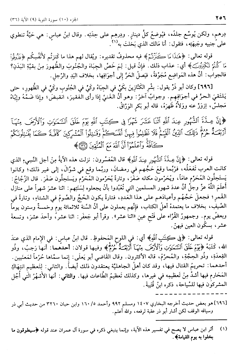 (1) أثر ابن عباس لا يصح في تفسير هذه الآية، وإنما ينبغي ذكره في سورة آل عمران عند قوله سَيُطَوَّقُونَ ما بَخِلُوا بِهِ يَوْمَ الْقِيامَةِ.
