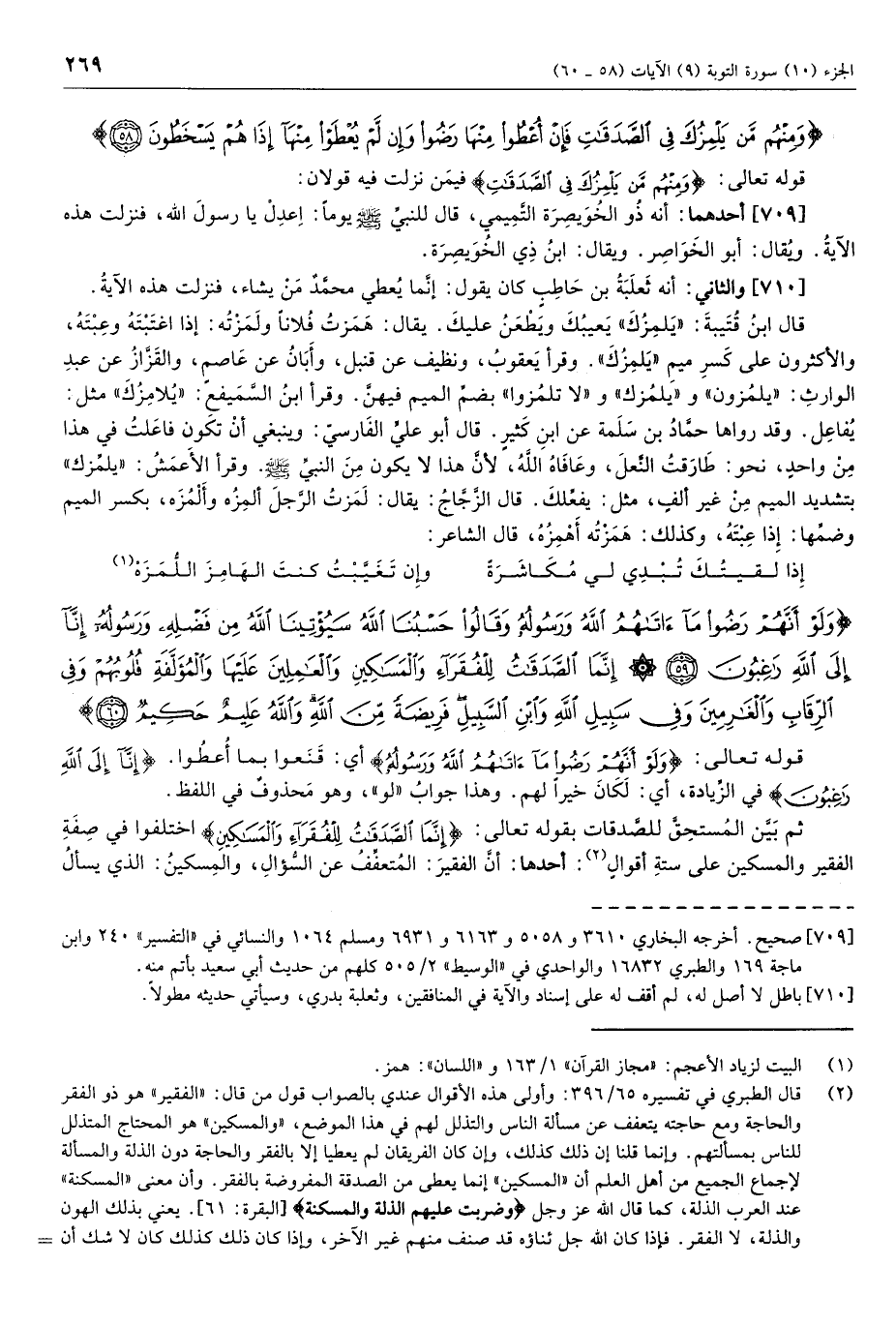 وَلَوْ أَنَّهُمْ رَضُوا ما آتاهُمُ اللَّهُ وَرَسُولُهُ وَقالُوا حَسْبُنَا اللَّهُ سَيُؤْتِينَا اللَّهُ مِنْ فَضْلِهِ وَرَسُولُهُ إِنَّا إِلَى اللَّهِ راغِبُونَ (59) إِنَّمَا الصَّدَقاتُ لِلْفُقَراءِ وَالْمَساكِينِ وَالْعامِلِينَ عَلَيْها وَالْمُؤَلَّفَةِ قُلُوبُهُمْ وَفِي الرِّقابِ وَالْغارِمِينَ وَفِي سَبِيلِ اللَّهِ وَابْنِ السَّبِيلِ فَرِيضَةً مِنَ اللَّهِ وَاللَّهُ عَلِيمٌ حَكِيمٌ (60)
