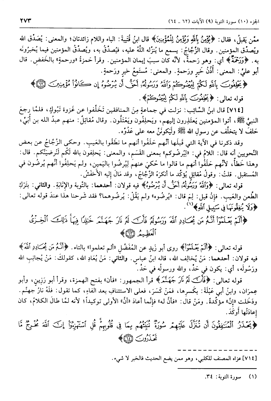 وهذا خطأ، لأنّهم حلفوا أنهم ما قالوا ما حكي عنهم ليُرضُوا باليمين، ولم يحلفوا أنهم يُرضُون في المستقبل. قلت: وقول مقاتل يؤكد ما أنكره الزجاج، وقد مال إليه الأخفش.