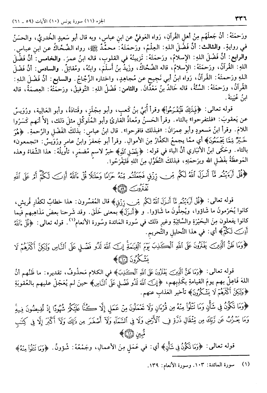 والرابع: أن فضل الله: الإِسلام، ورحمته: تزيينه في القلوب، قاله ابن عمر. والخامس: أن فضل الله: القرآن، ورحمته: الإِسلام، قاله الضحاك، وزيد بن أسلم، وابنه، ومقاتل. والسادس: أن فضل الله ورحمته: القرآن، رواه ابن أبي نجيح عن مجاهد، واختاره الزجاج. والسابع: أن فضل الله: