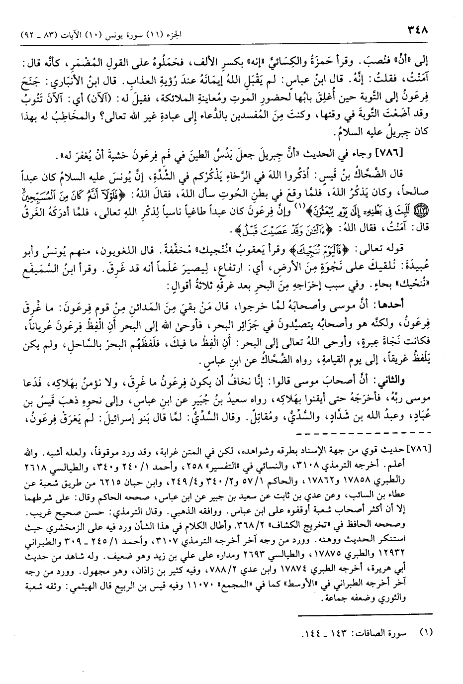 (786) وجاء في الحديث «أن جبريل جعل يدسُّ الطين في فم فرعون خشية أن يُغفرَ له» .