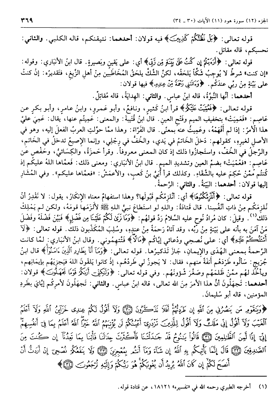 «إِن كنت» شرط لا يوجب شكّاً يلحقه، لكن الشك يلحق المخاطَبين من أهل الزيغ، فتقديره: إِن كنتُ على بينة من ربي عندكم. وَآتانِي رَحْمَةً مِنْ عِنْدِهِ فيها قولان: