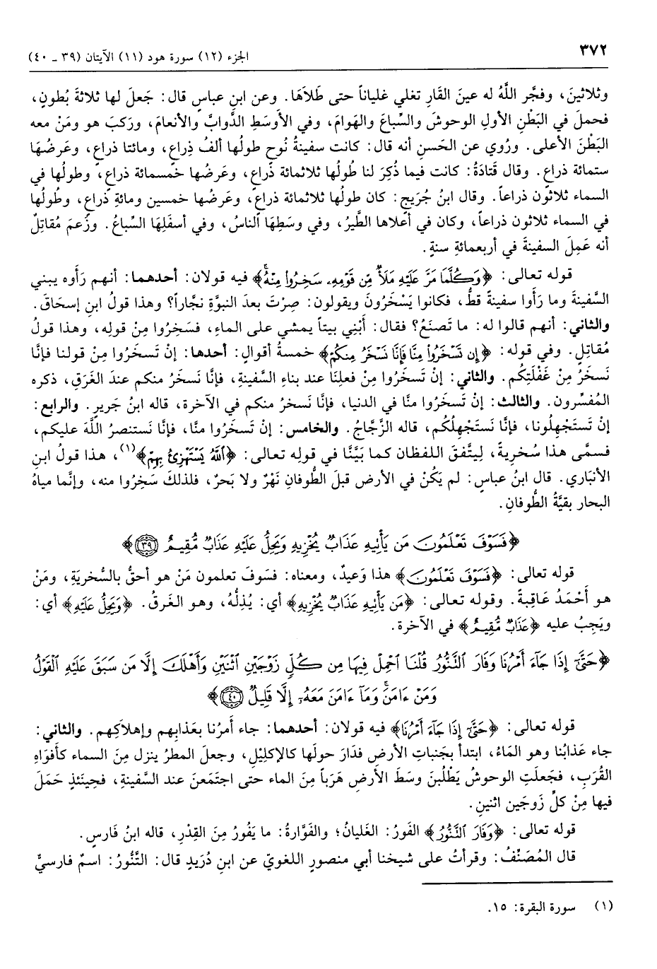 حَتَّى إِذا جاءَ أَمْرُنا وَفارَ التَّنُّورُ قُلْنَا احْمِلْ فِيها مِنْ كُلٍّ زَوْجَيْنِ اثْنَيْنِ وَأَهْلَكَ إِلاَّ مَنْ سَبَقَ عَلَيْهِ الْقَوْلُ وَمَنْ آمَنَ وَما آمَنَ مَعَهُ إِلاَّ قَلِيلٌ (40)