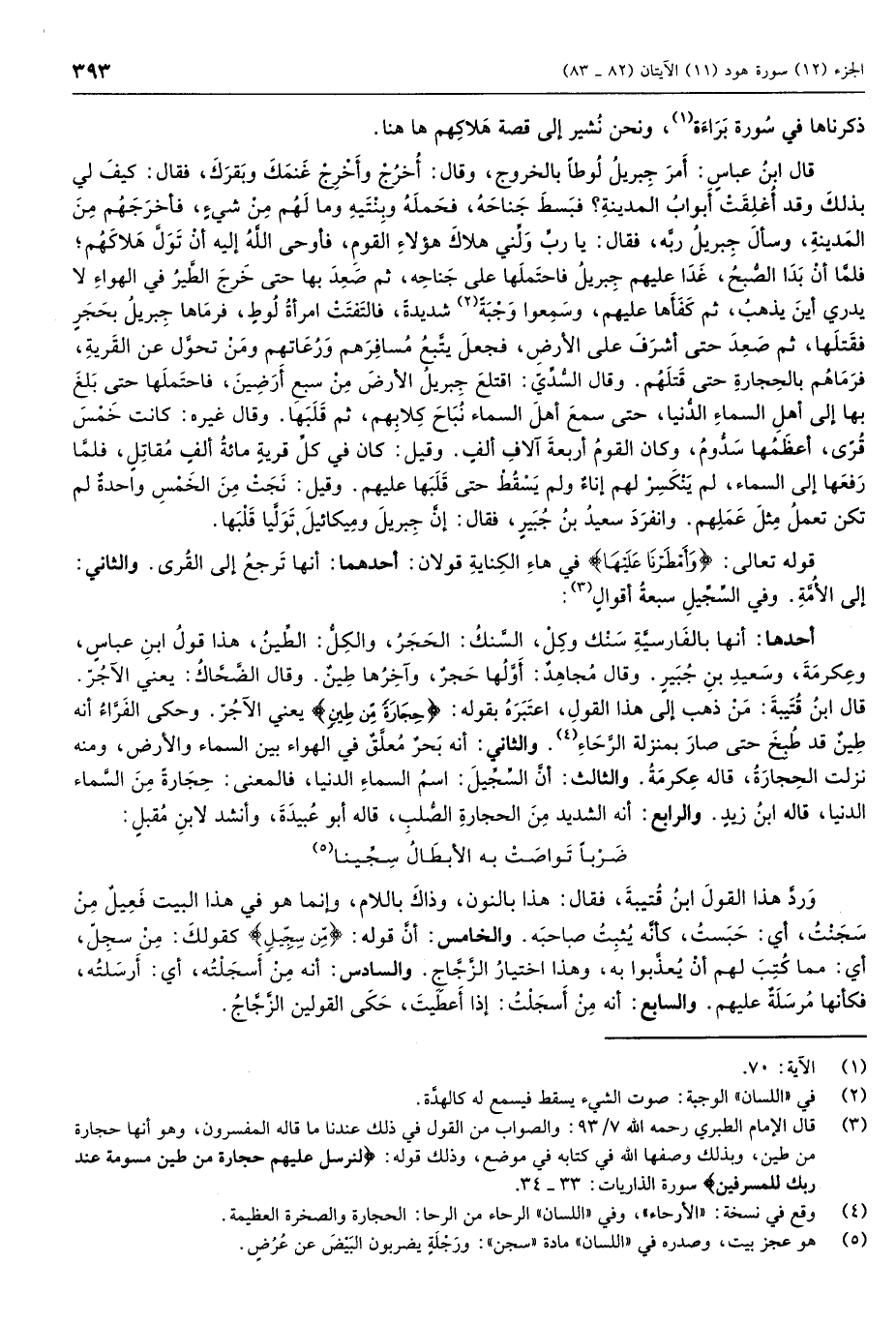 (3) قال الإمام الطبري رحمه الله 7/ 93: والصواب من القول في ذلك عندنا ما قاله المفسرون، وهو أنها حجارة من طين، وبذلك وصفها الله في كتابه في موضع، وذلك قوله: لِنُرْسِلَ عَلَيْهِمْ حِجارَةً مِنْ طِينٍ مُسَوَّمَةً عِنْدَ رَبِّكَ لِلْمُسْرِفِينَ سورة الذاريات: 33- 34.