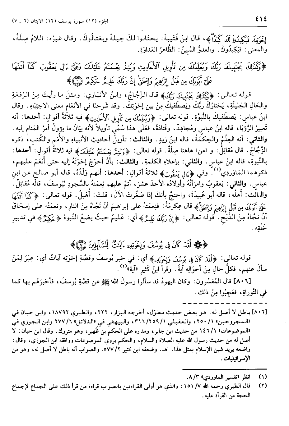وَكَذلِكَ يَجْتَبِيكَ رَبُّكَ وَيُعَلِّمُكَ مِنْ تَأْوِيلِ الْأَحادِيثِ وَيُتِمُّ نِعْمَتَهُ عَلَيْكَ وَعَلى آلِ يَعْقُوبَ كَما أَتَمَّها عَلى أَبَوَيْكَ مِنْ قَبْلُ إِبْراهِيمَ وَإِسْحاقَ إِنَّ رَبَّكَ عَلِيمٌ حَكِيمٌ (6)